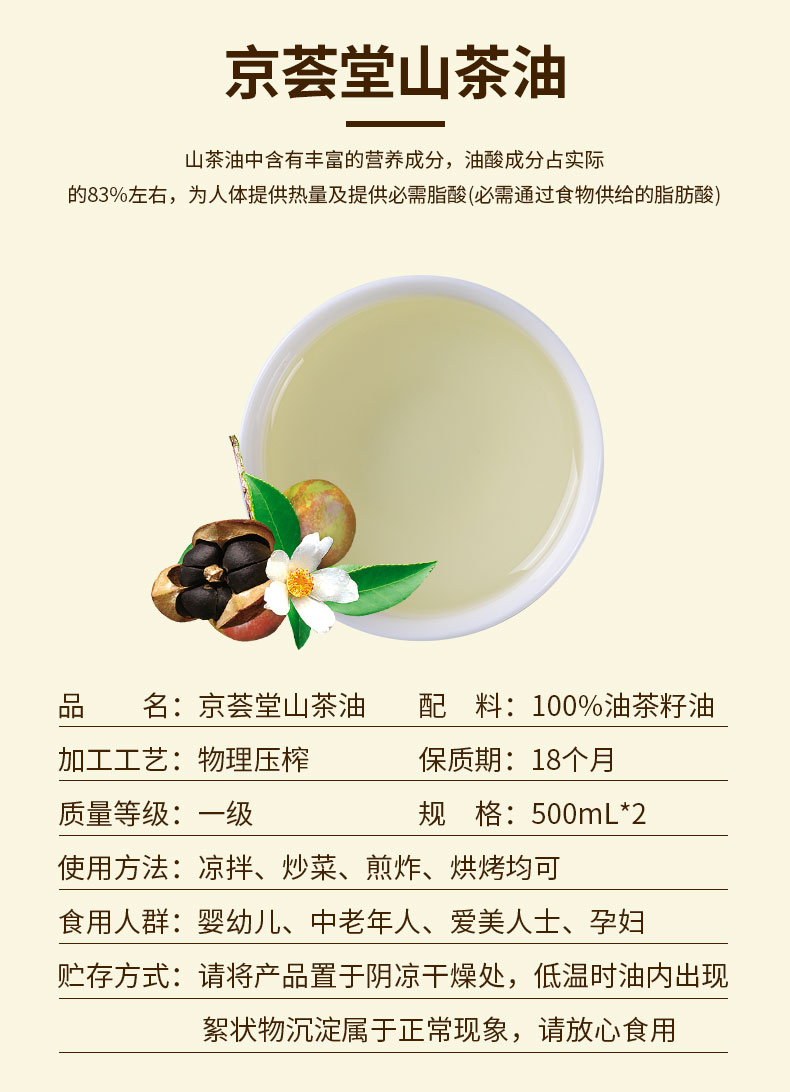 商品名称:京荟堂山茶油礼盒500ml*2瓶