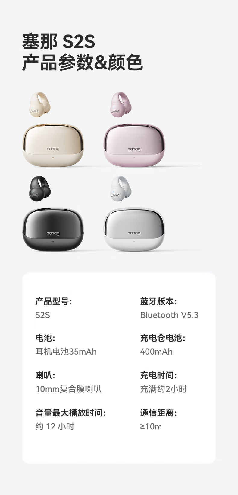 商品名称:SANAG/塞那骨传导开放式蓝牙耳机S2S