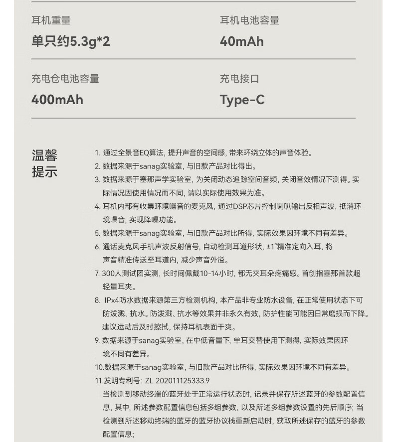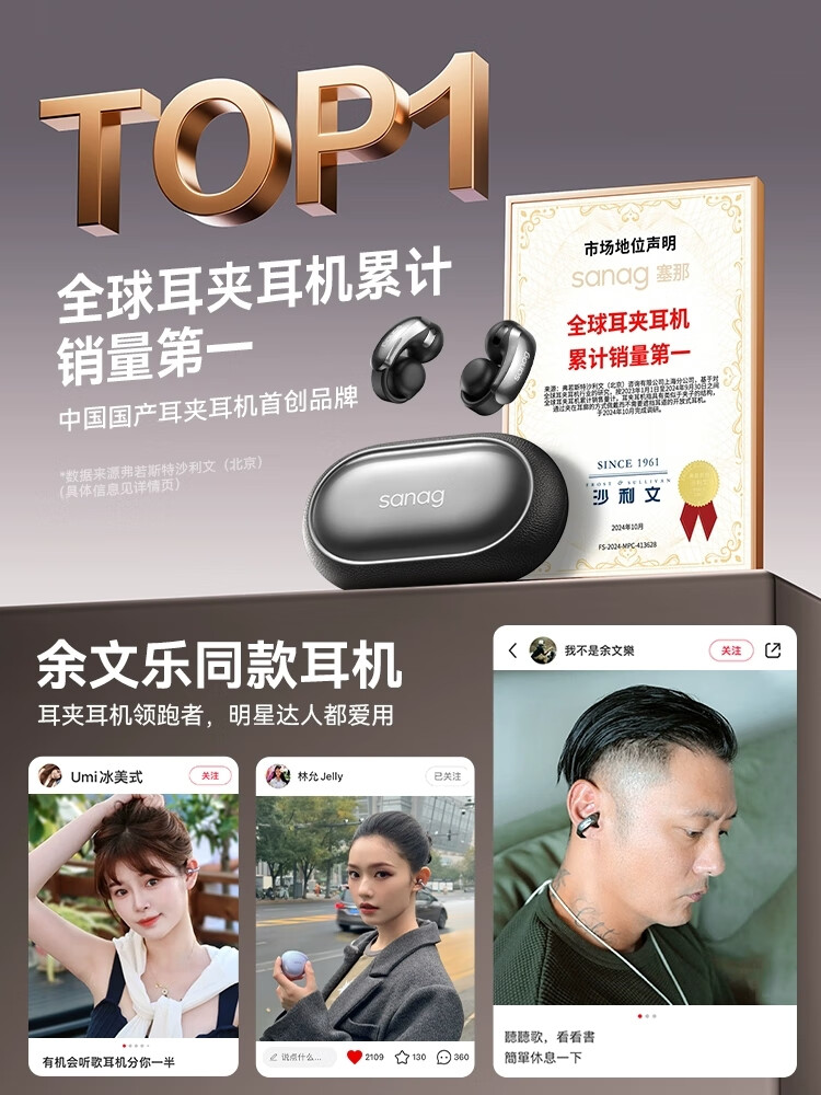 商品名称:SANAG/塞那夹耳式蓝牙耳机S9S AI