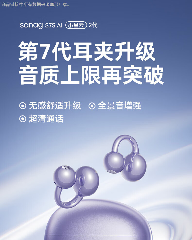 商品名称:SANAG/塞那骨传导蓝牙耳机S7S AI