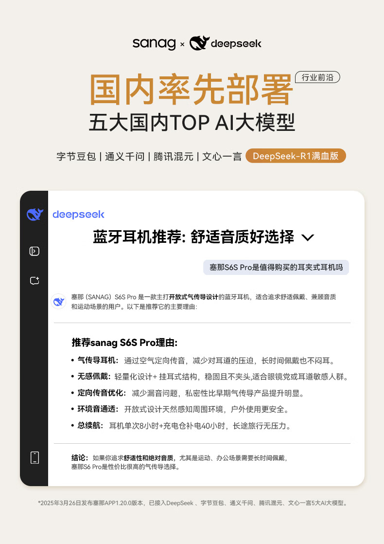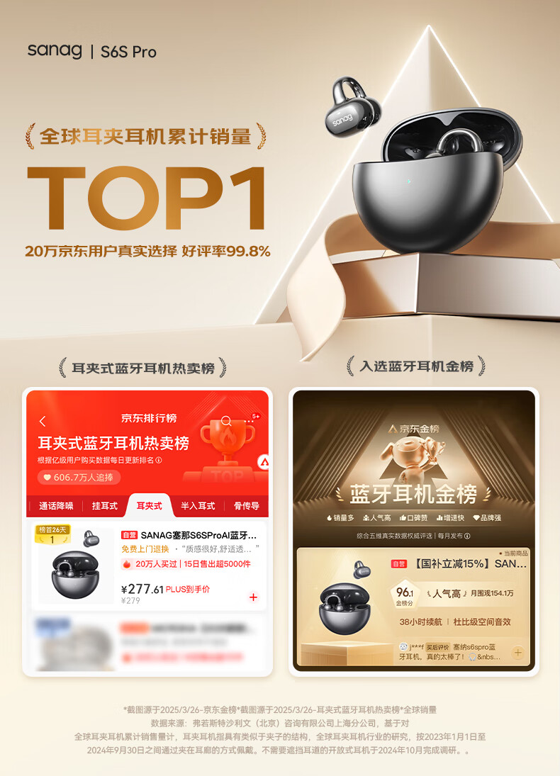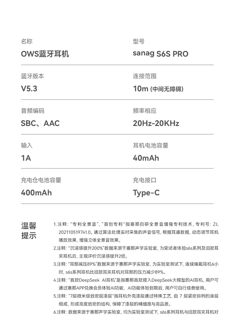 商品名称:SANAG/塞那OWS耳夹式蓝牙耳机S6SPro