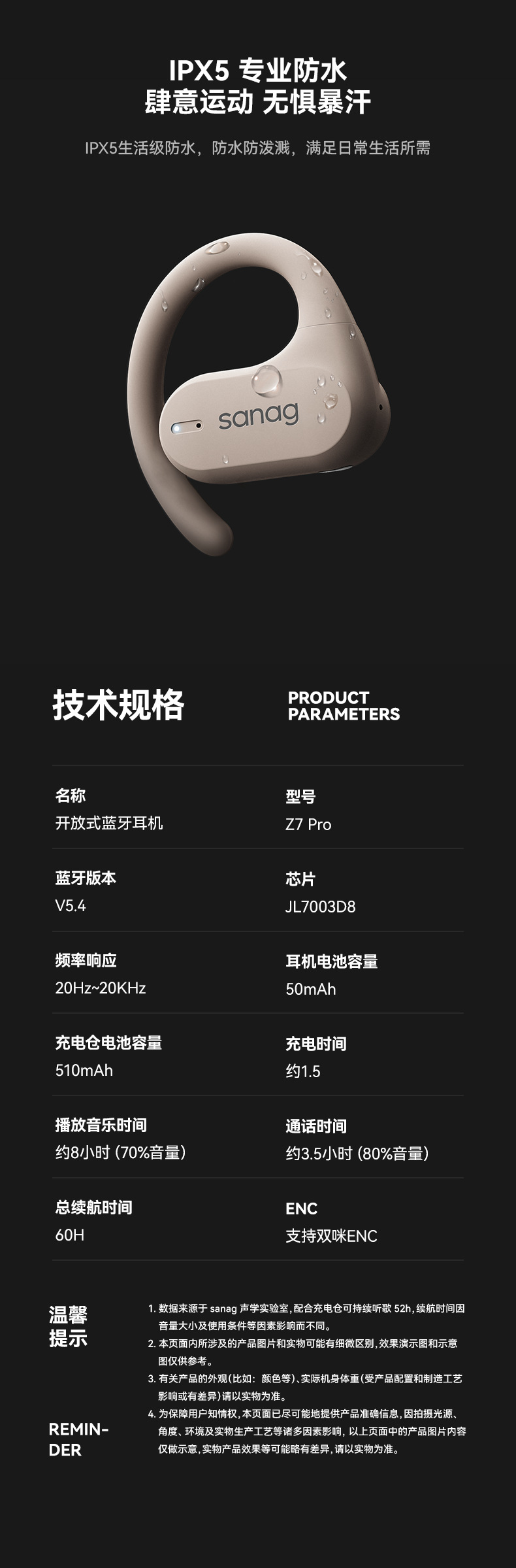 商品名称:SANAG/塞那真无线开放式蓝牙耳机Z7pro
