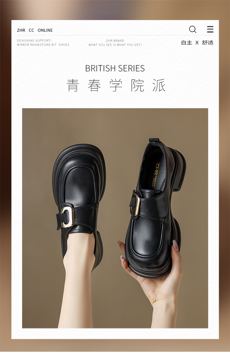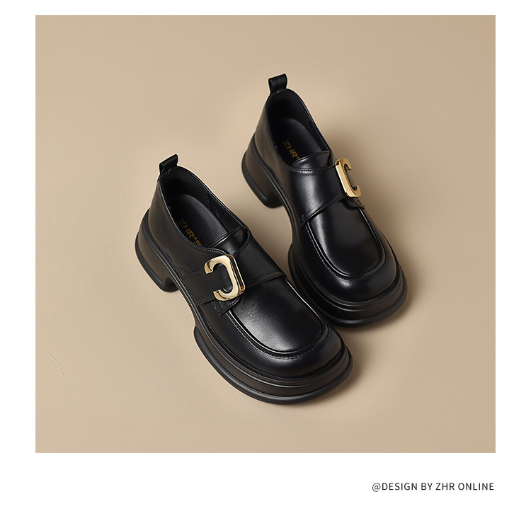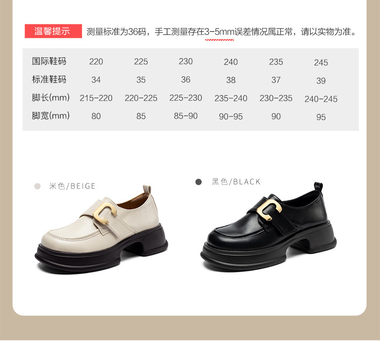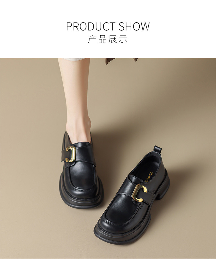 商品名称:【C形字母+魔术贴】时尚小皮鞋子女士单鞋春秋厚底乐福鞋女单鞋 904512