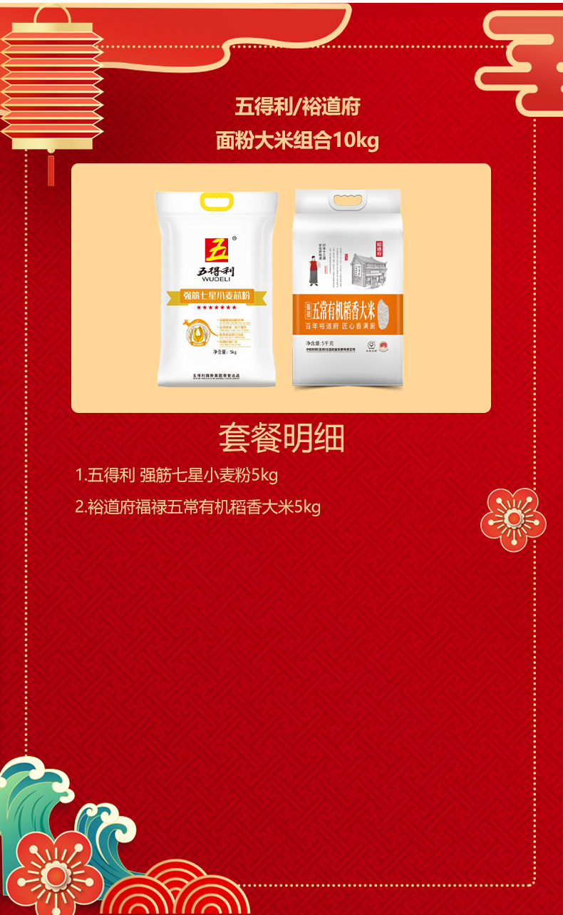 商品名称:【京东/德邦配送】裕道府/五得利 米面组合10kg