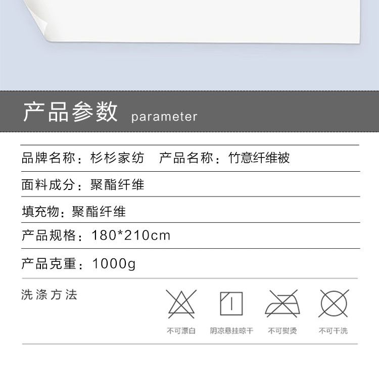 商品名称:杉杉(FIRS) QFS-35089 竹意纤维被 180x210cm