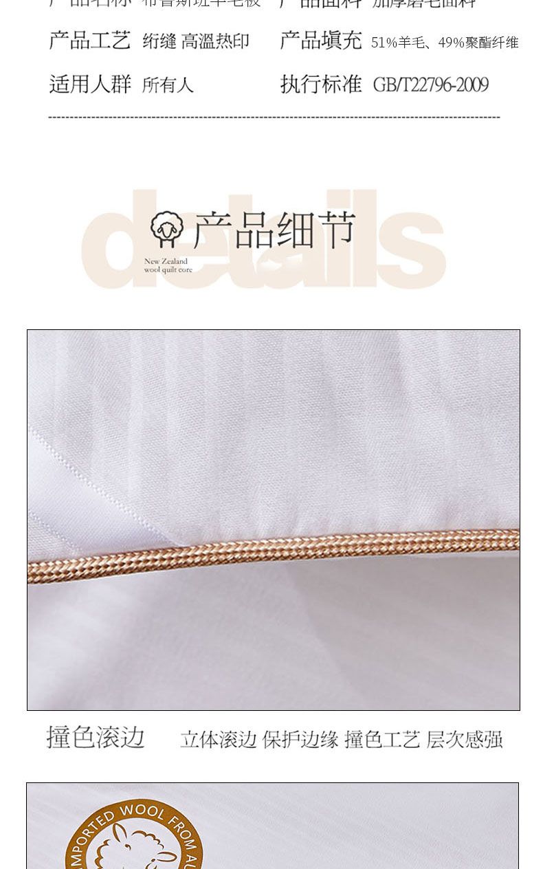 商品名称:杉杉(FIRS)QFS23016布鲁斯班羊毛被200*230cm