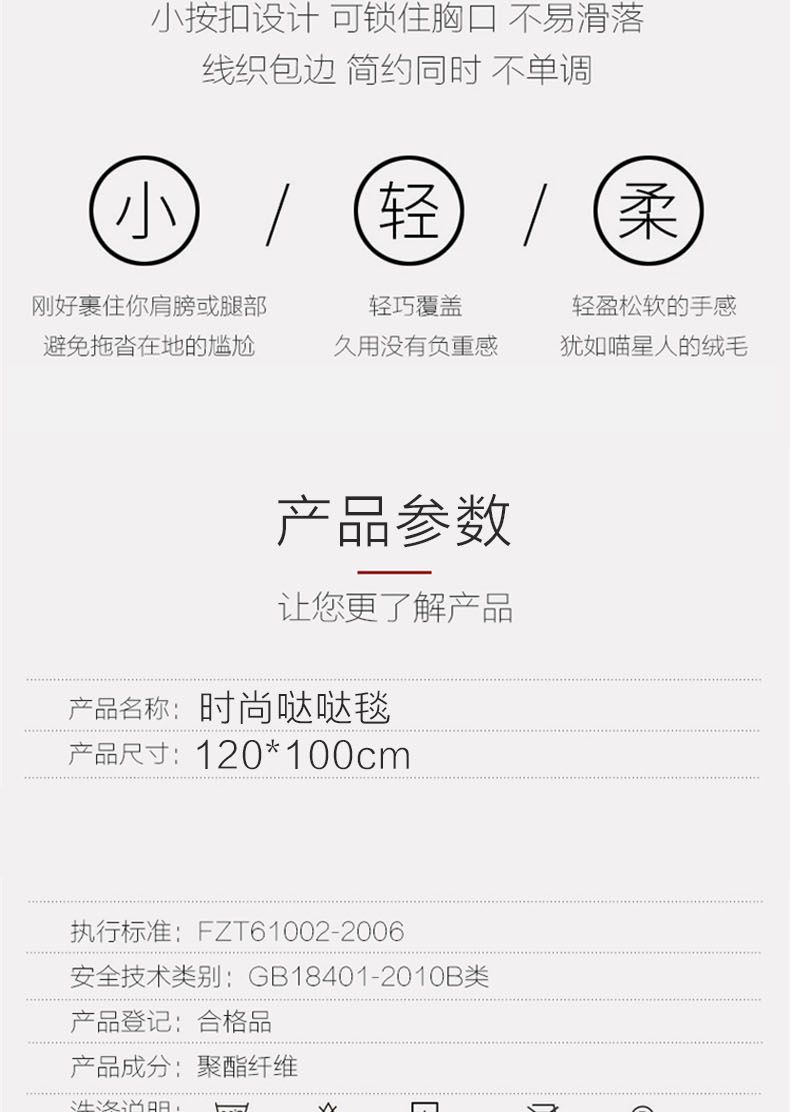 商品名称:杉杉(FIRS) QFS-18419 时尚搭搭毯100x120cm