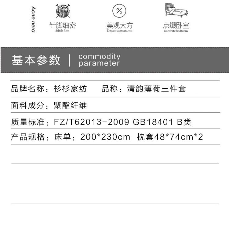 商品名称:杉杉(FIRS) QFS-23125 清韵薄荷保健三件套 200x230cm