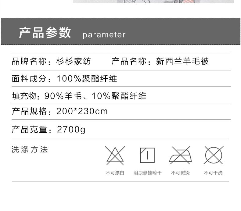商品名称:杉杉(FIRS) QFS-31014 新西兰羊毛被 200x230cm