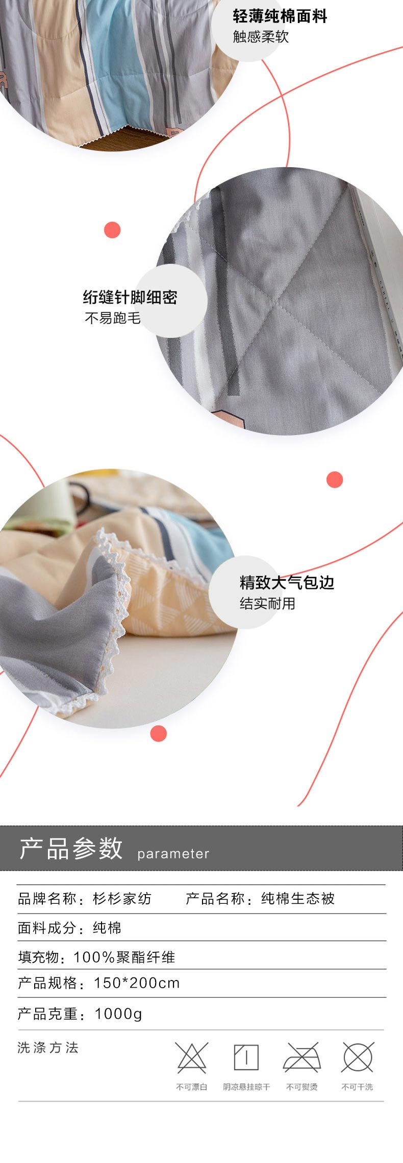 商品名称:杉杉(FIRS) QFS-20169 简约生态纯棉被 150x200cm