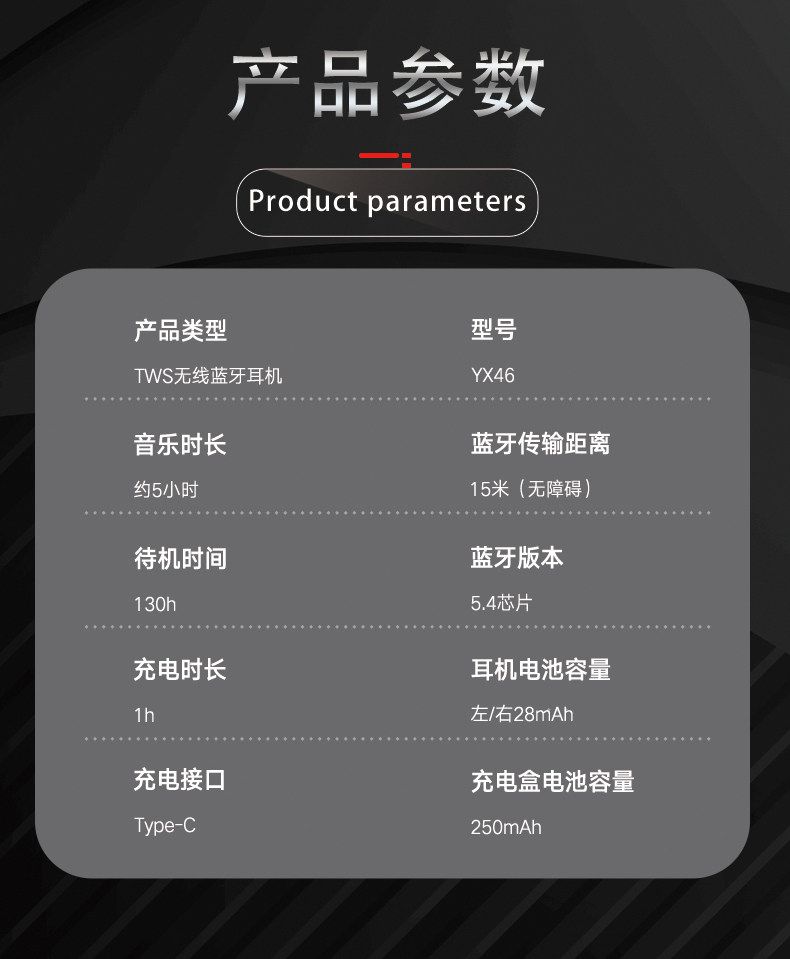 商品名称:LEFIT勒菲特真无线YX46蓝牙耳机TWS私模ENC通话降