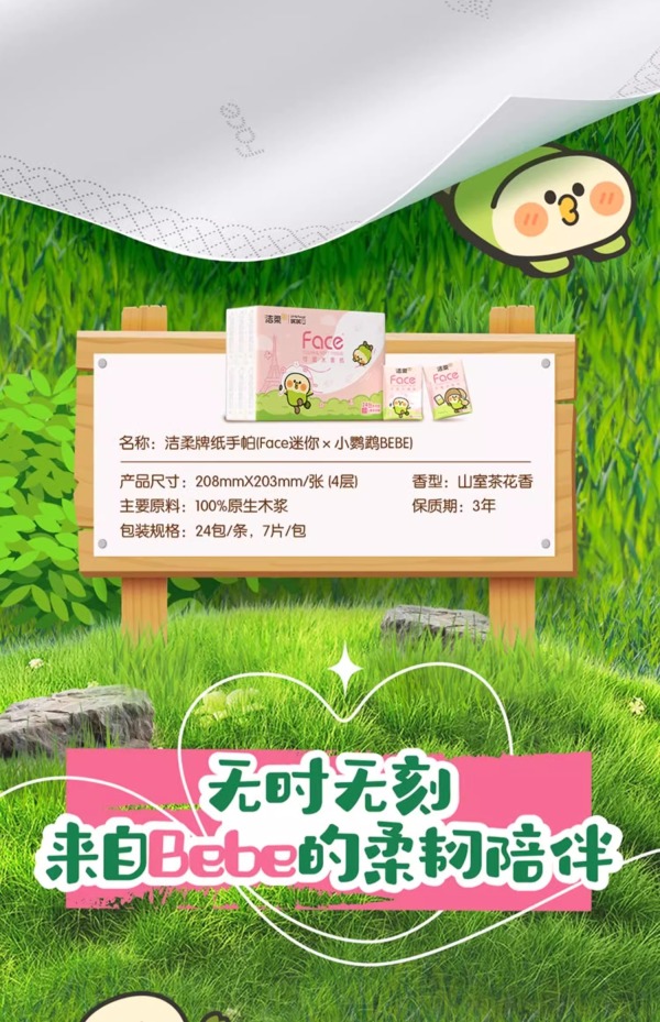 商品名称:洁柔Face超迷你小鹦鹉BEBE手帕纸6片4层30包/提