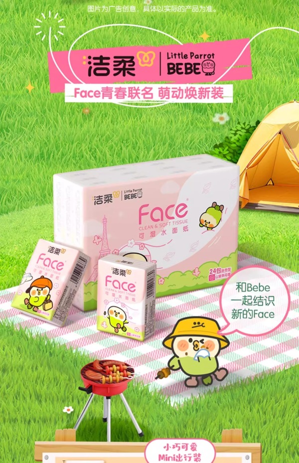 洁柔Face超迷你小鹦鹉BEBE手帕纸6片4层30包/提