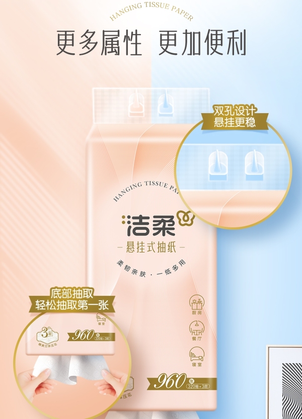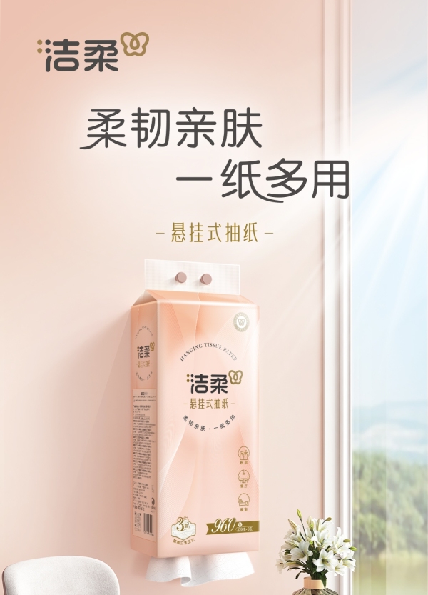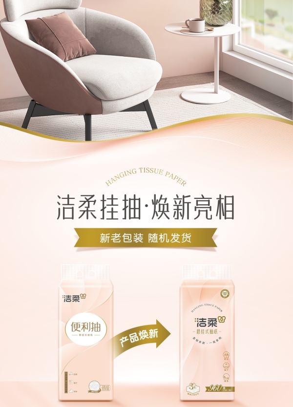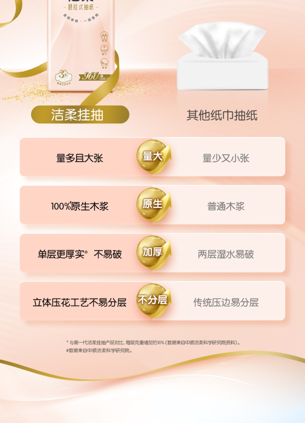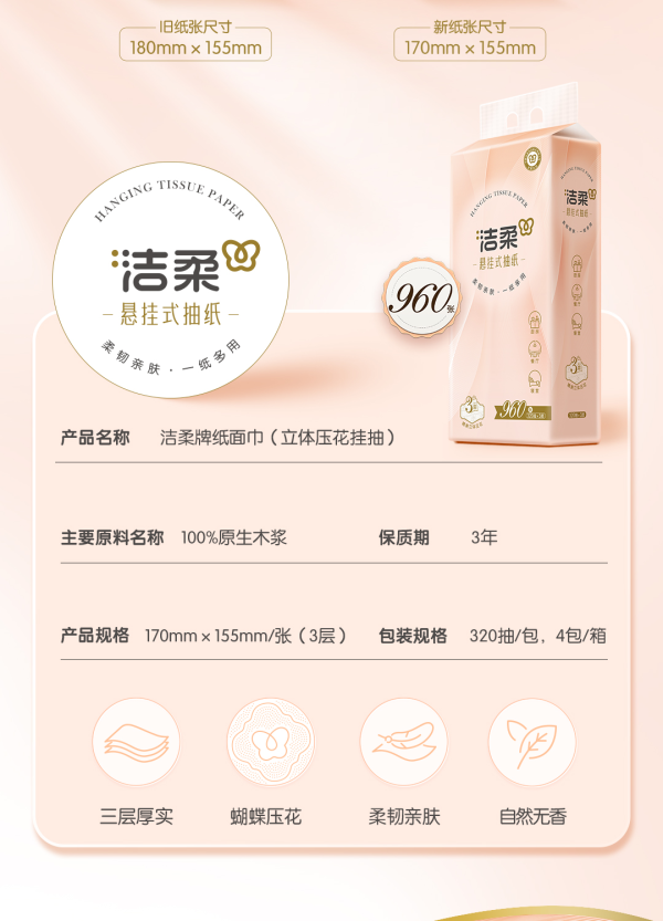 商品名称:洁柔牌纸面巾(立体压花挂抽)320抽3层(4包箱装)GR224-04E