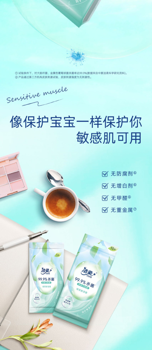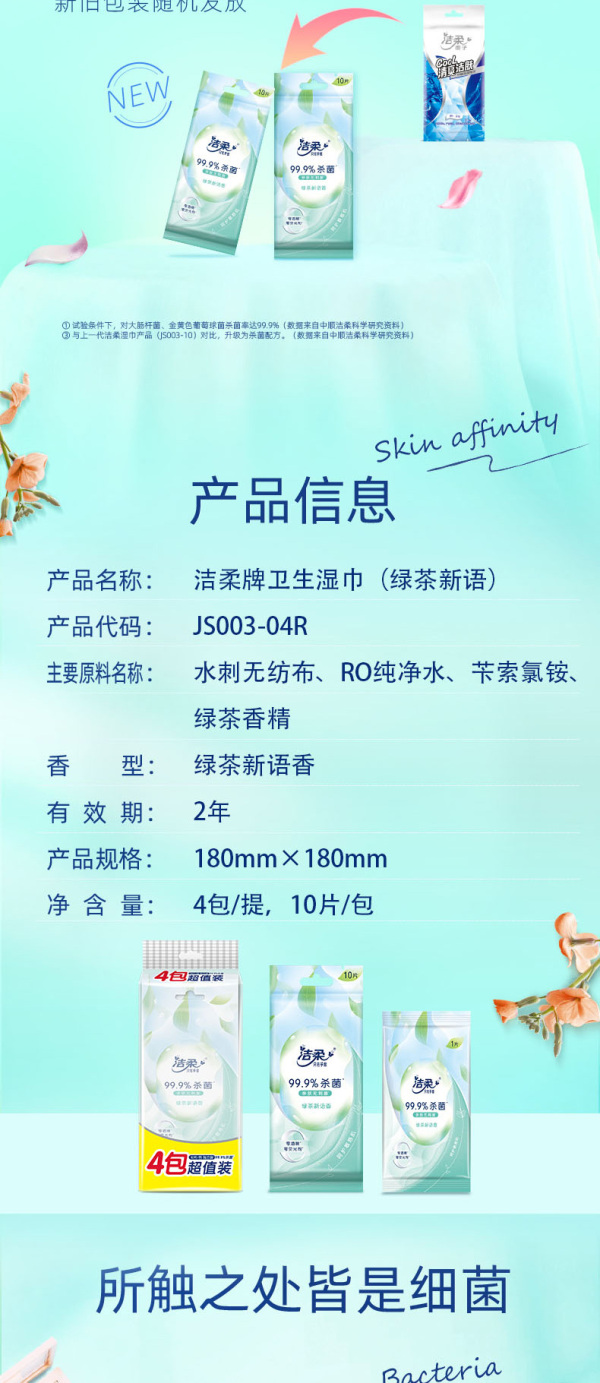 商品名称:洁柔牌卫生湿巾绿茶新语10片装