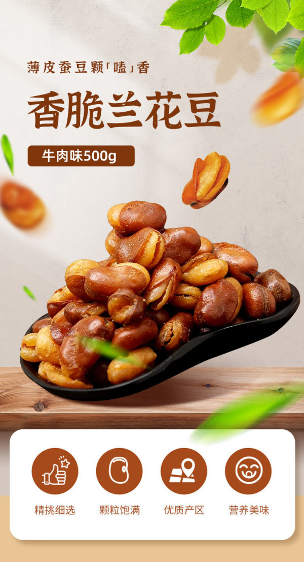 商品名称:浙梅牛肉味兰花豆坚果炒货零食500g*1袋/2袋