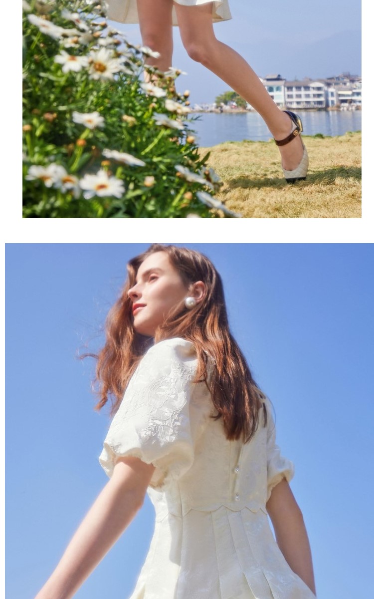 商品名称:【提花面料】甜美绣花小白裙浪漫时尚宫廷风连衣裙 714385