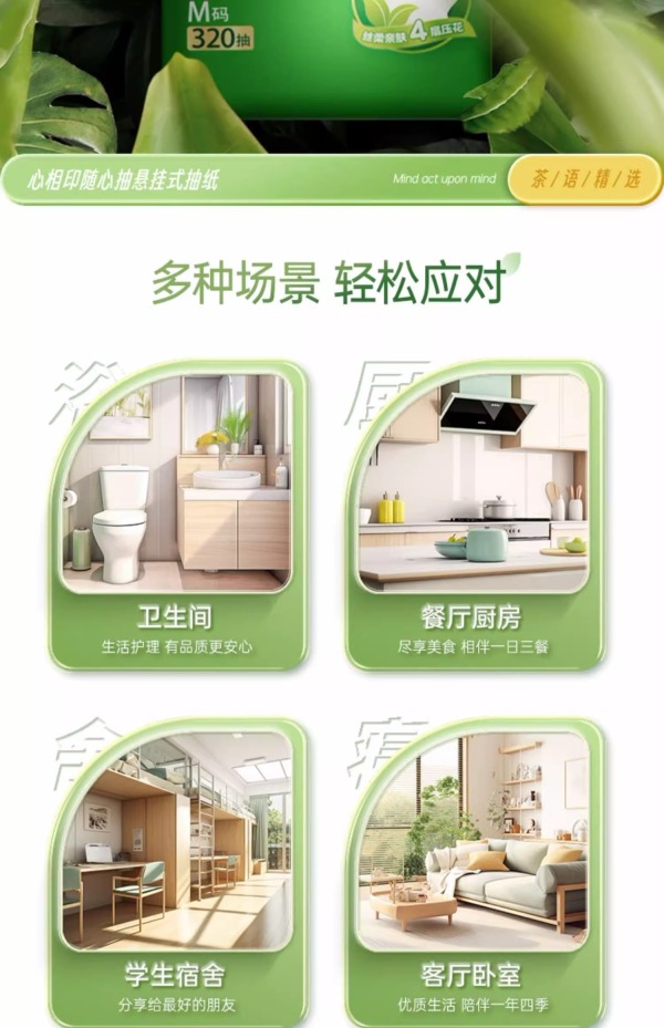 心相印茶语精选320抽4提四层悬挂式提装面巾纸