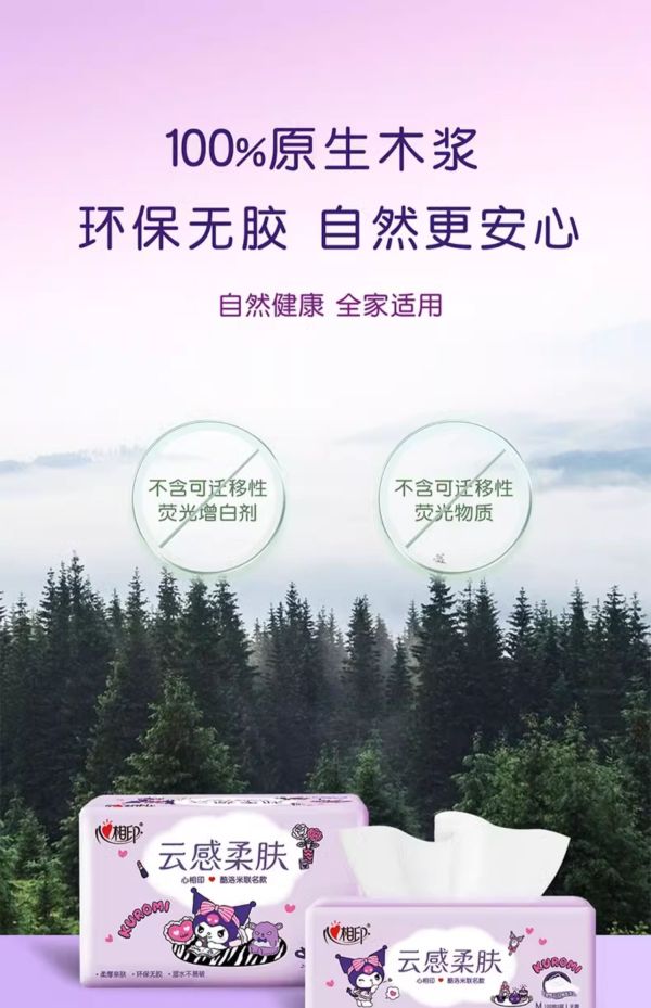 心相印云感100抽M码三层立体压花抽纸酷洛米联名款