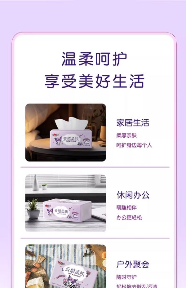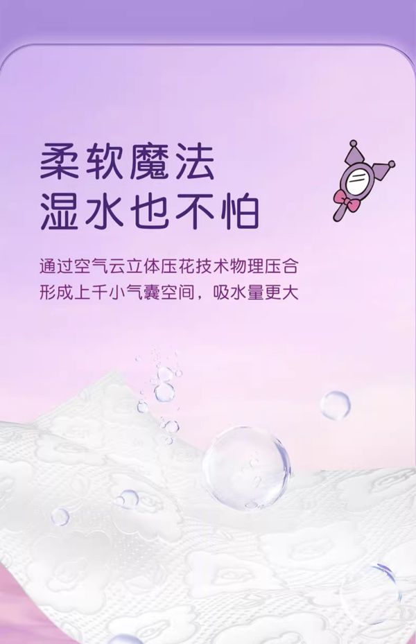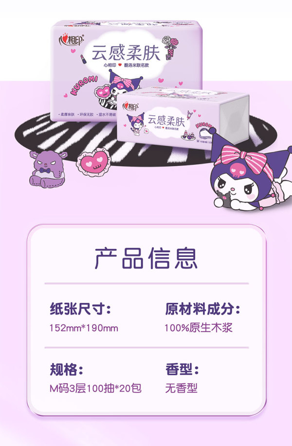 商品名称:心相印云感100抽M码三层立体压花抽纸酷洛米联名款