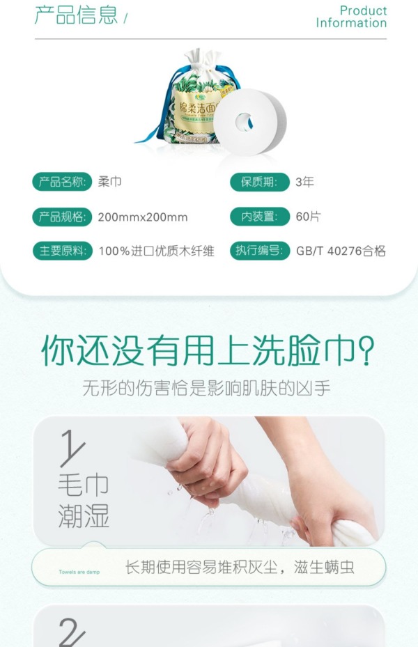 商品名称:心相印棉柔系列洗脸巾60片/包