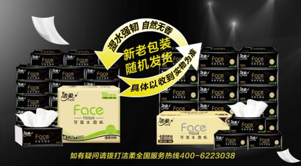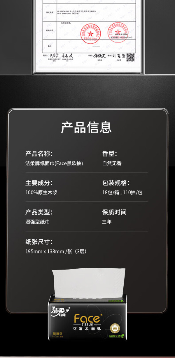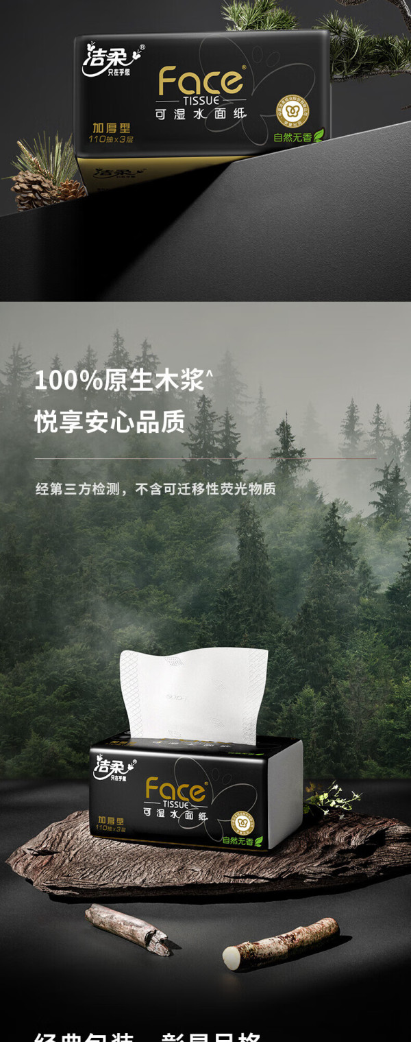 商品名称:BR12618E洁柔黑Face抽纸110抽3层纸面巾
