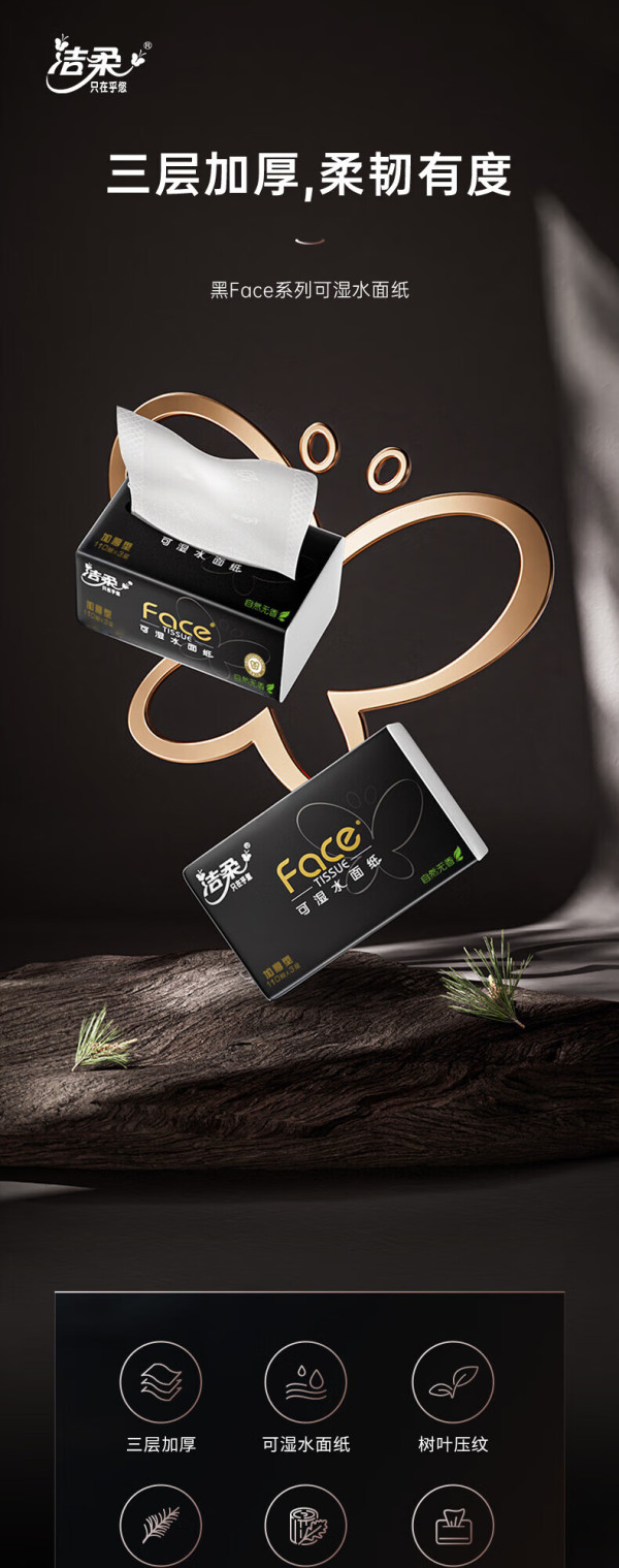 BR12618E洁柔黑Face抽纸110抽3层纸面巾