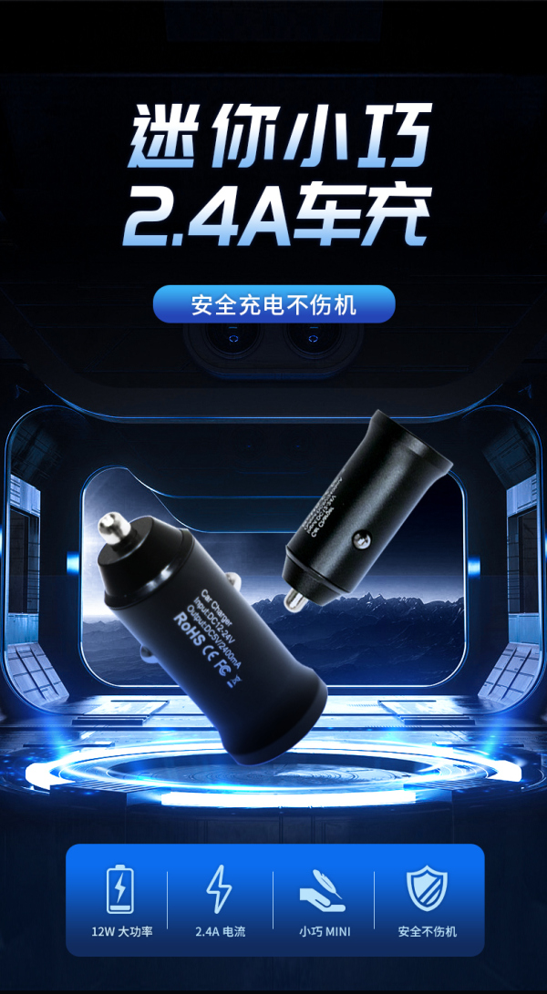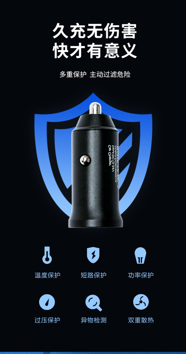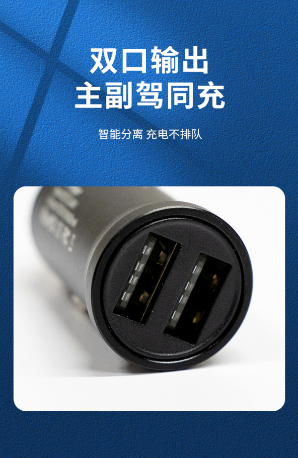 商品名称:DAHUA行车记录仪车充双USB接口点烟器一拖二电源线插头转换器