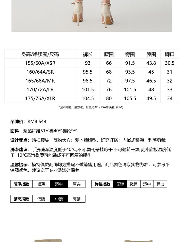 商品名称:【专柜同款】春夏纯色中腰九分萝卜裤休闲裤女气质百搭时尚 432721
