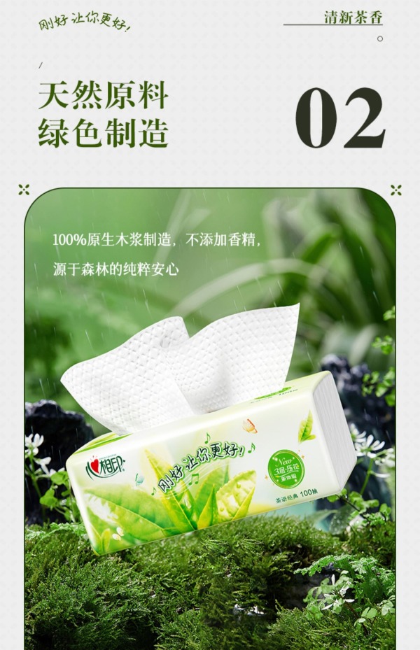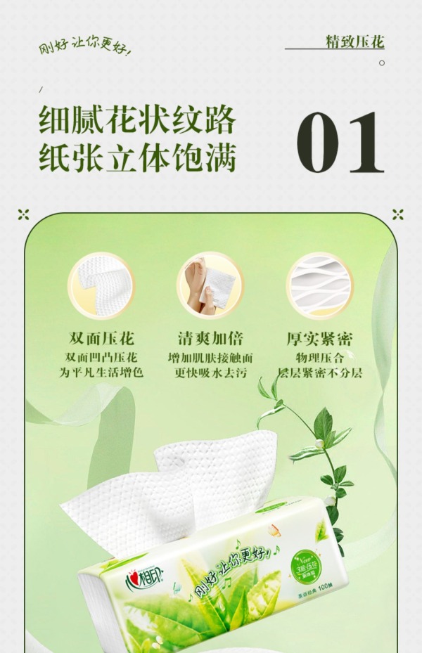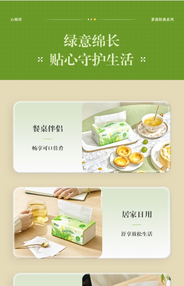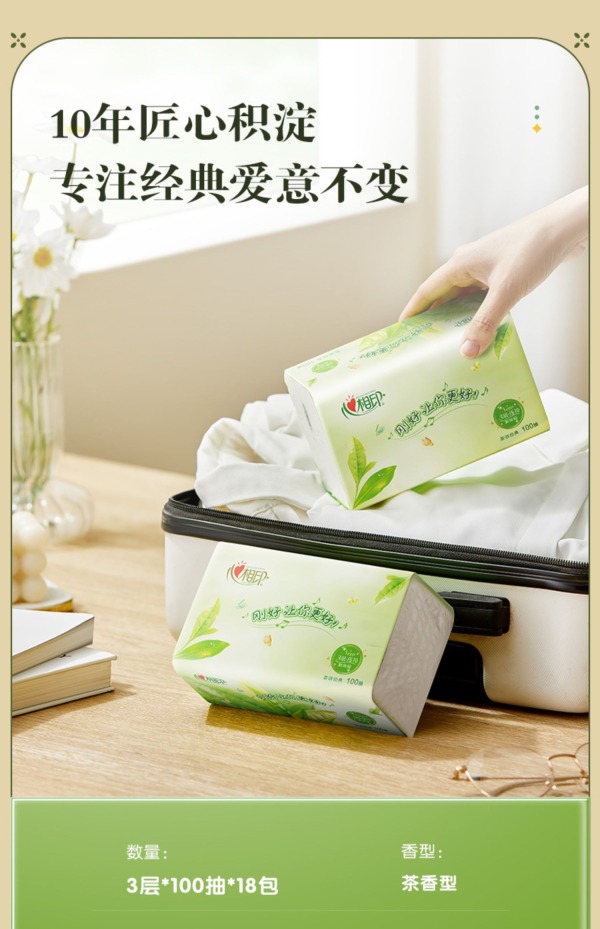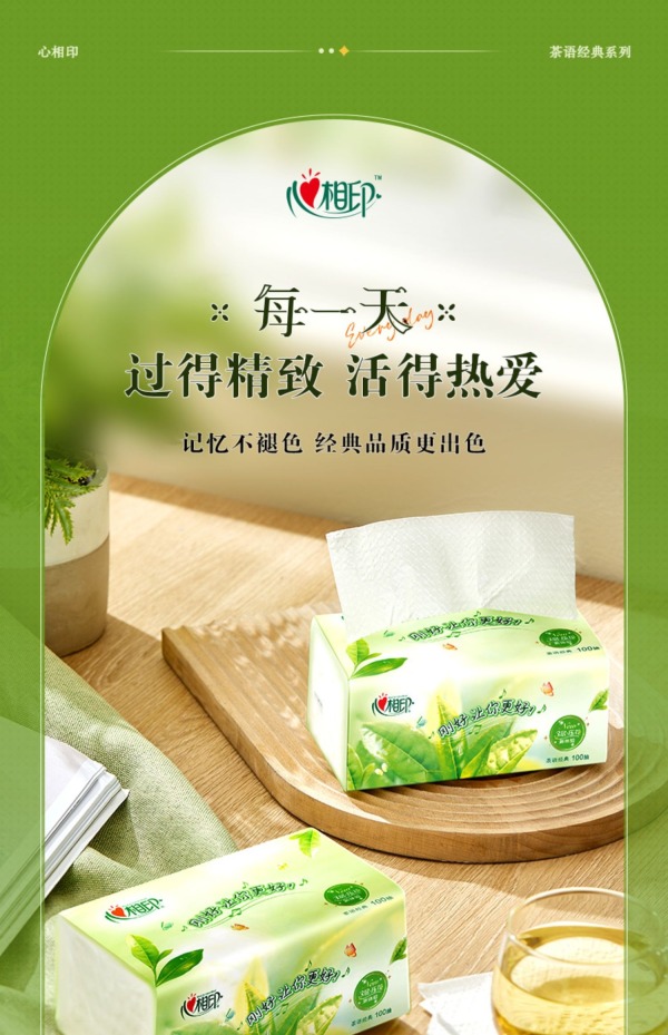 心相印茶语经典系列100抽三层塑装纸面巾M码