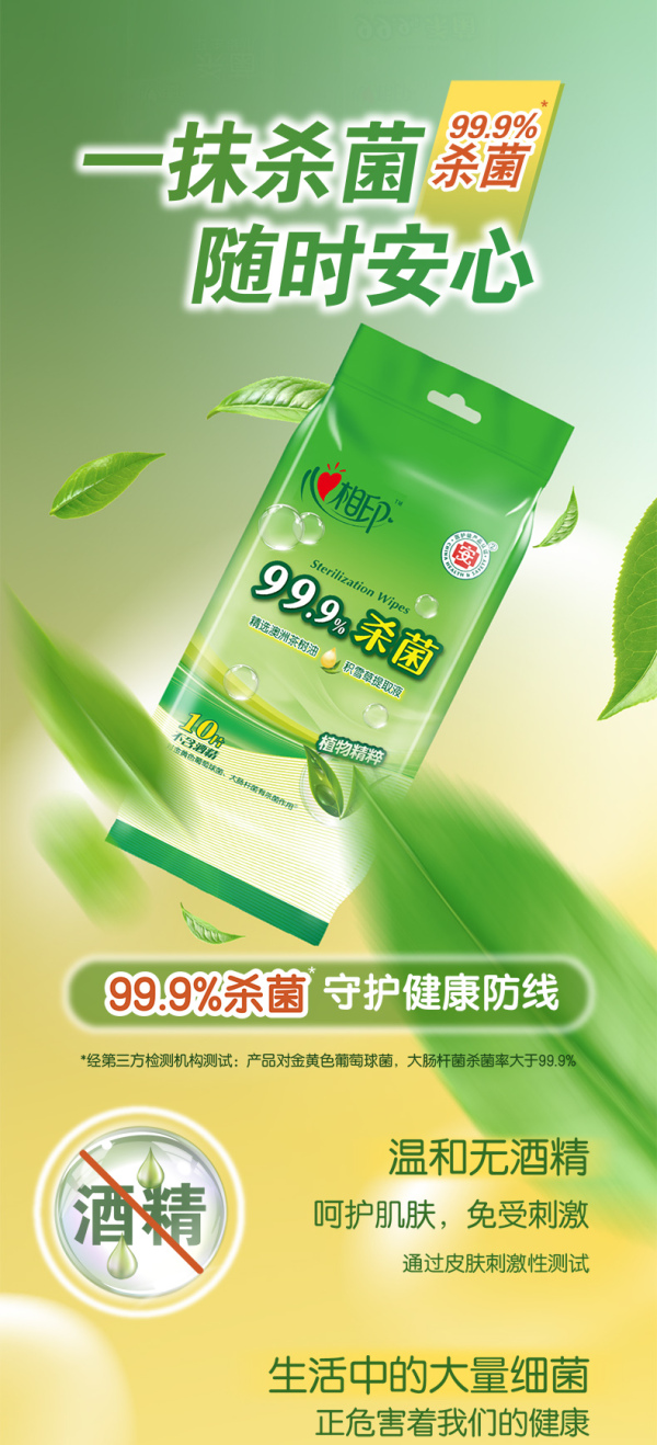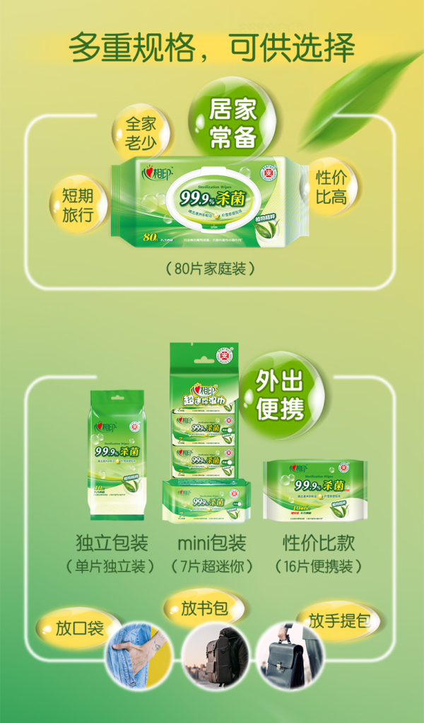 商品名称:心相印消毒杀菌湿巾独立包装10片*8包