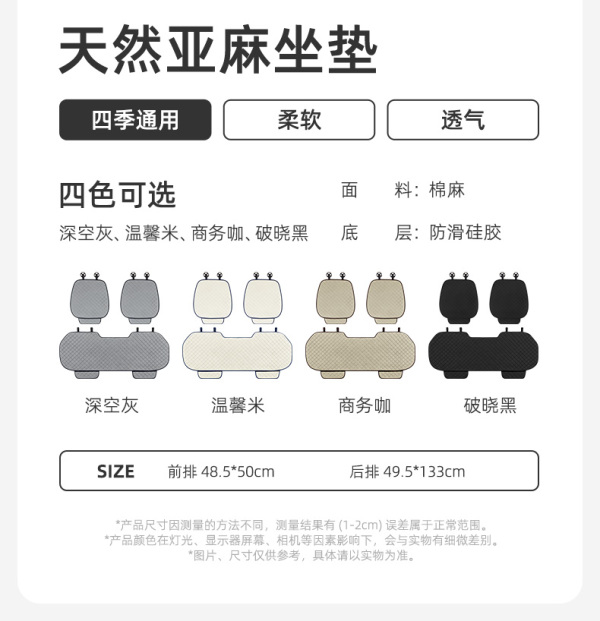 商品名称:乔氏淳悦系列汽车坐垫亚麻夏季单片座椅垫通用四季女士透气后排三件套座垫