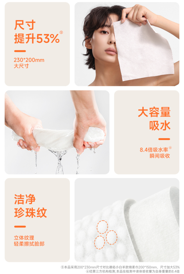 商品名称:德佑云朵抽取式珍珠纹洗脸巾50片