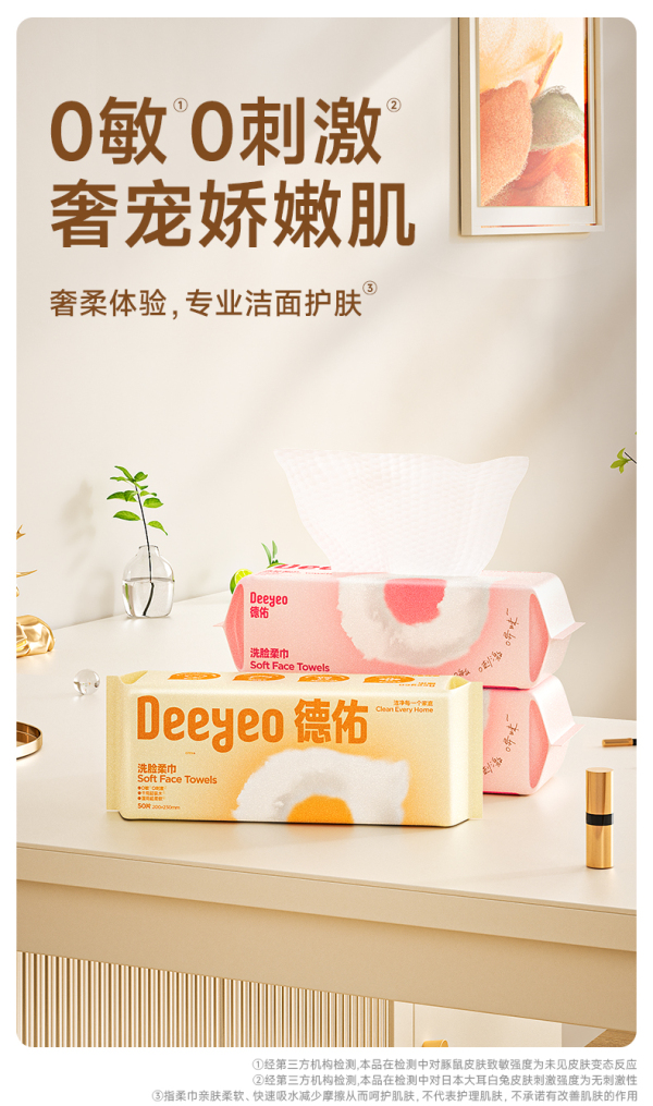 德佑云朵抽取式珍珠纹洗脸巾50片