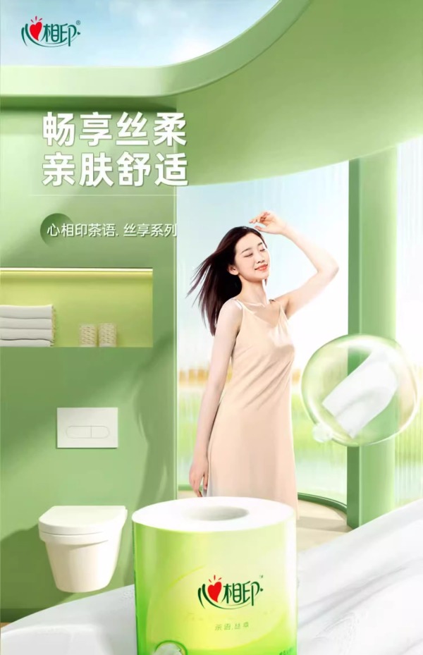 BT927心相印茶语丝享140克27粒装四层茶叶压花卷筒卫生纸