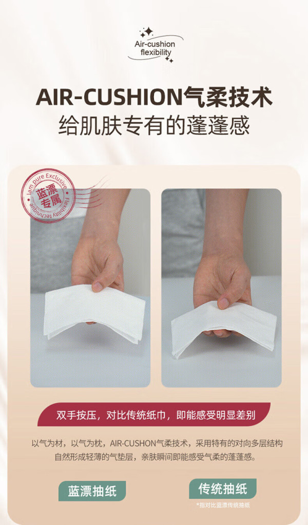 蓝漂白色气垫压花抽纸6包黑色提袋装