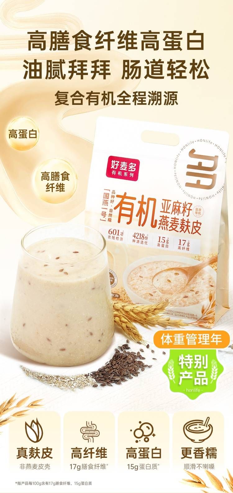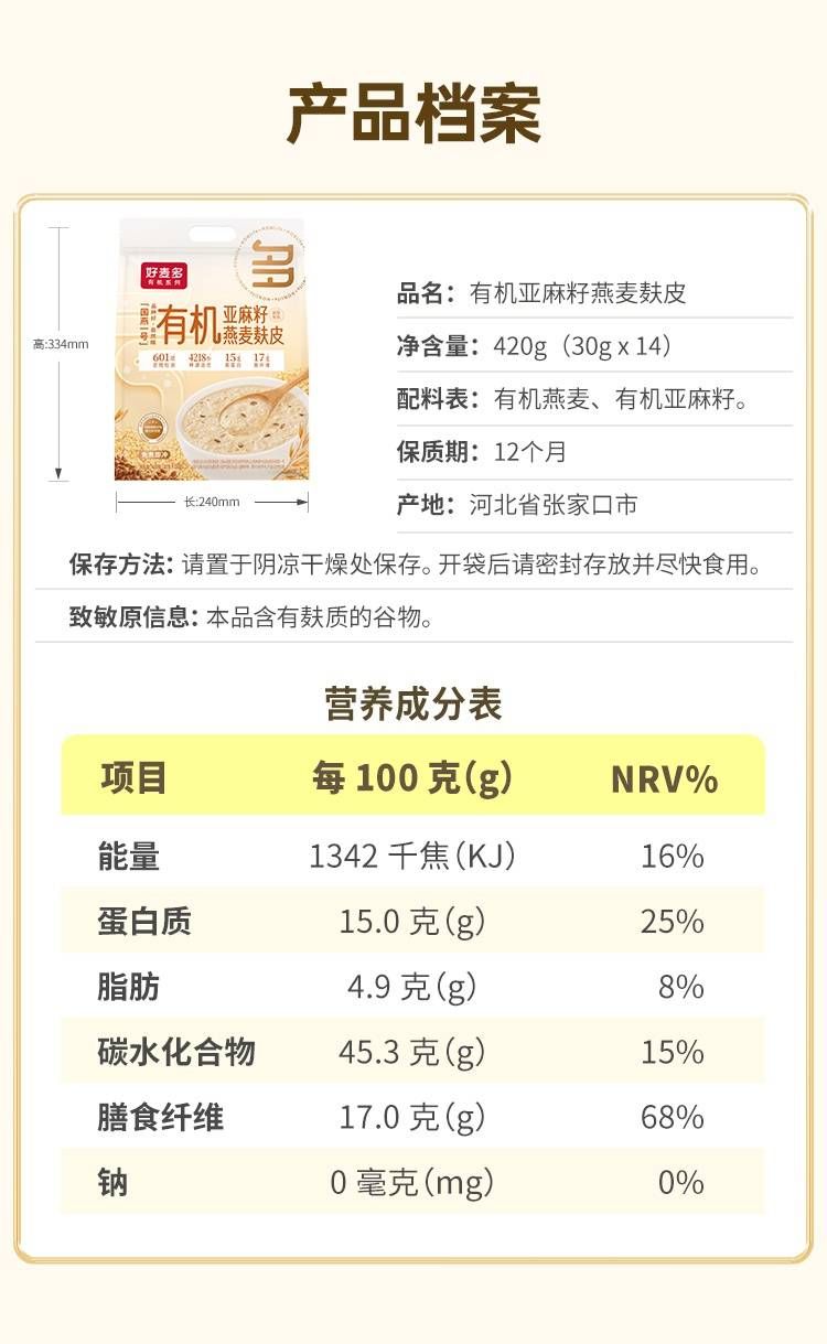 商品名称:好麦多有机亚麻籽燕麦麸皮420g*2袋装