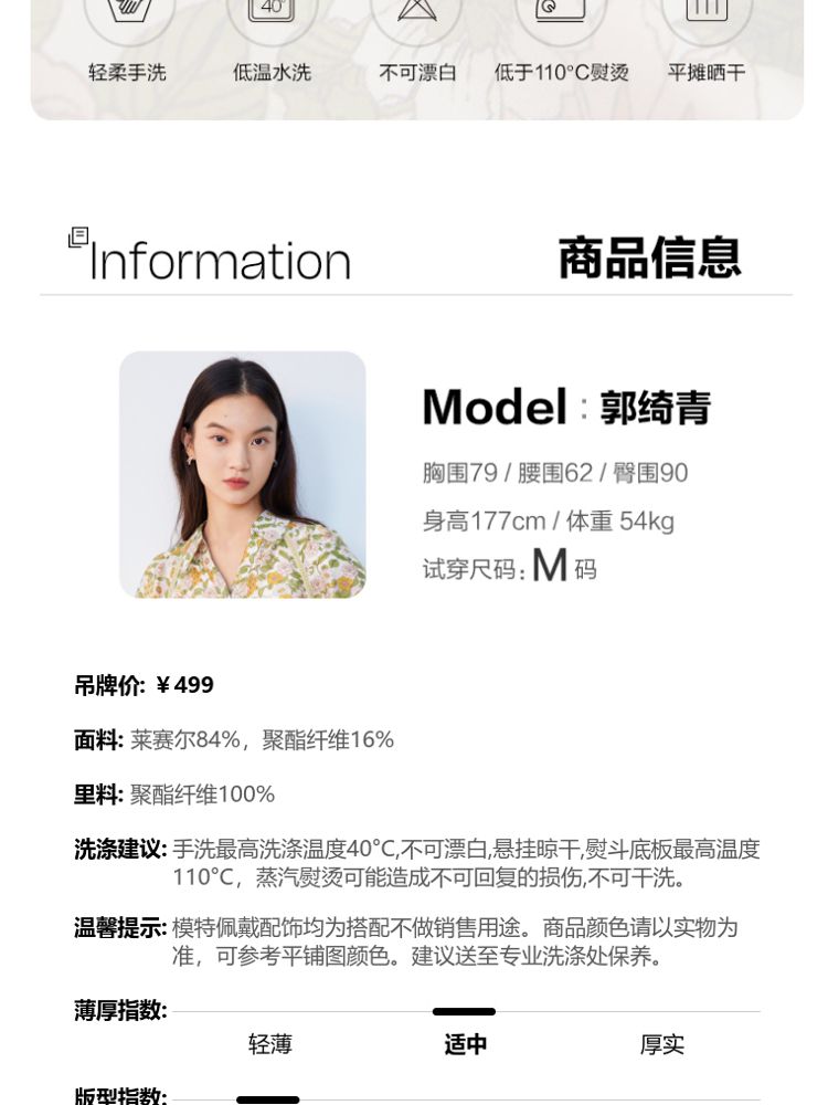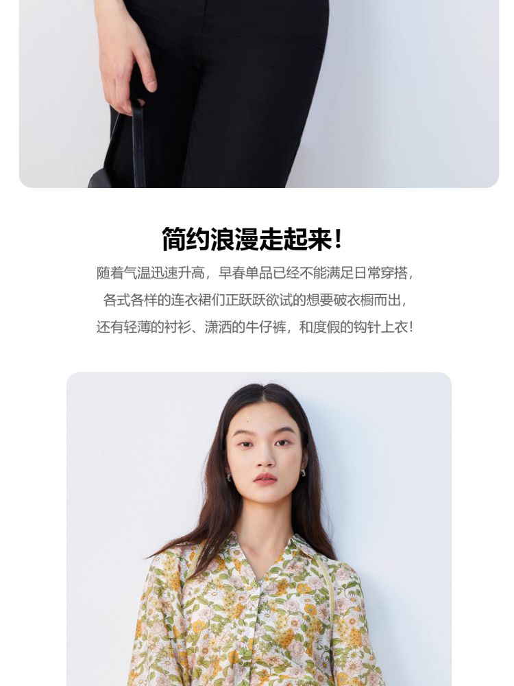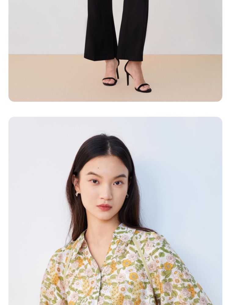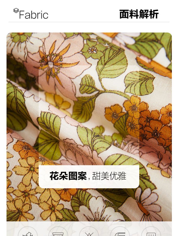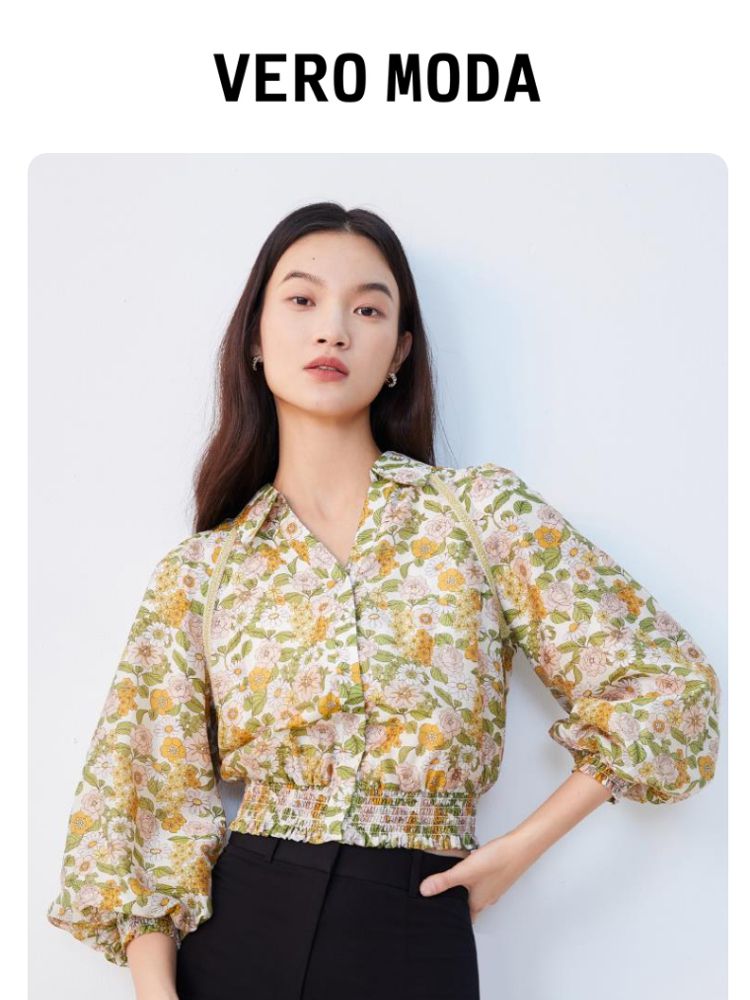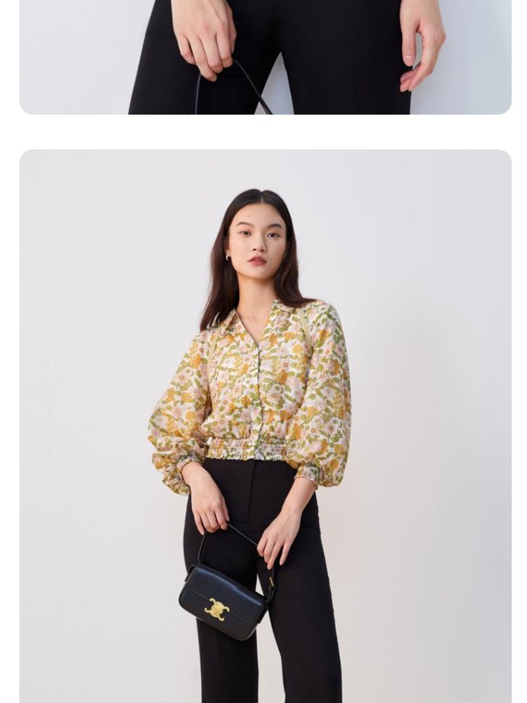 商品名称:【天丝柔软】春秋专柜款花朵灯笼袖V领松紧腰上衣女 971025