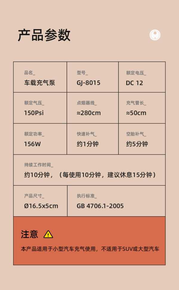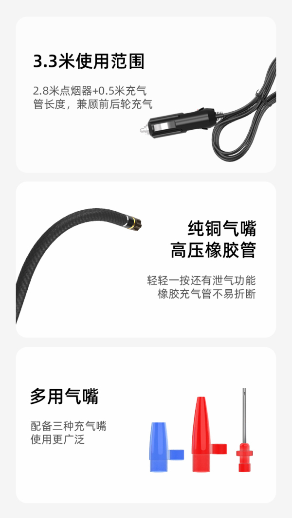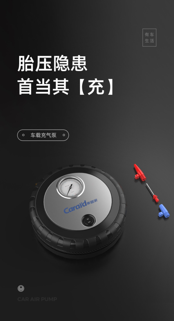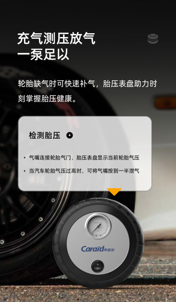 商品名称:车管家 车载充气泵12V便携式小汽车轮胎加气泵测胎压充气机汽车电动快速充气泵车用打气泵GJ-8015 银灰色车用款