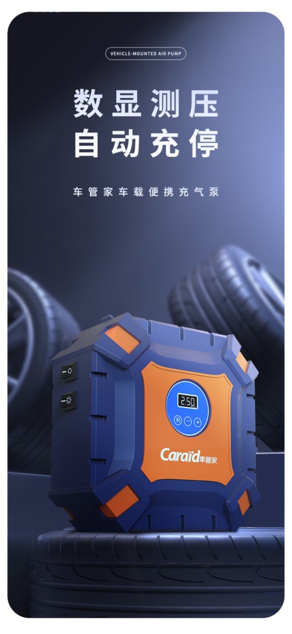 商品名称:车管家 车用充气泵数显便携电动打气泵预设胎压自动充停快速充气小汽车轮胎加气泵车载充气泵GJ-8012 蓝色-车用款