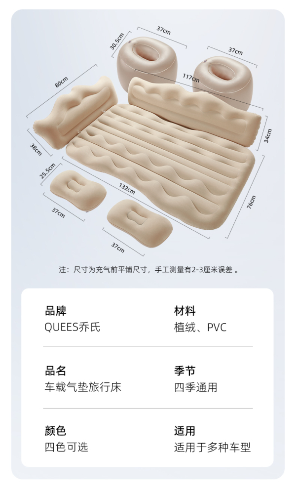 商品名称:乔氏车载充气床汽车后排睡垫旅行床垫轿车后座气垫床车内睡觉床