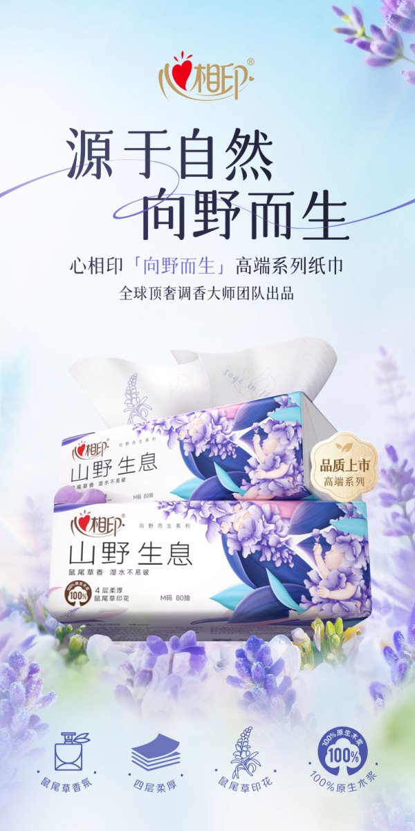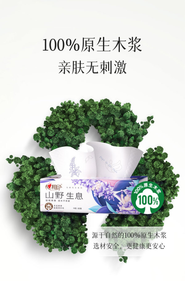 心相印 向野而生系列80抽四层塑装面巾纸(鼠尾草)