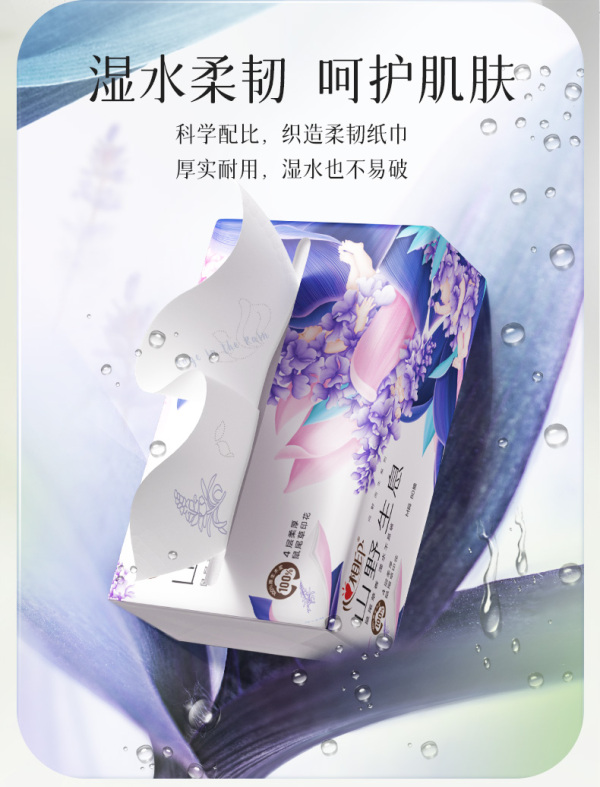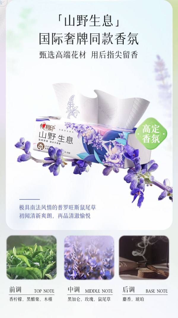 商品名称:心相印 向野而生系列80抽四层塑装面巾纸(鼠尾草)