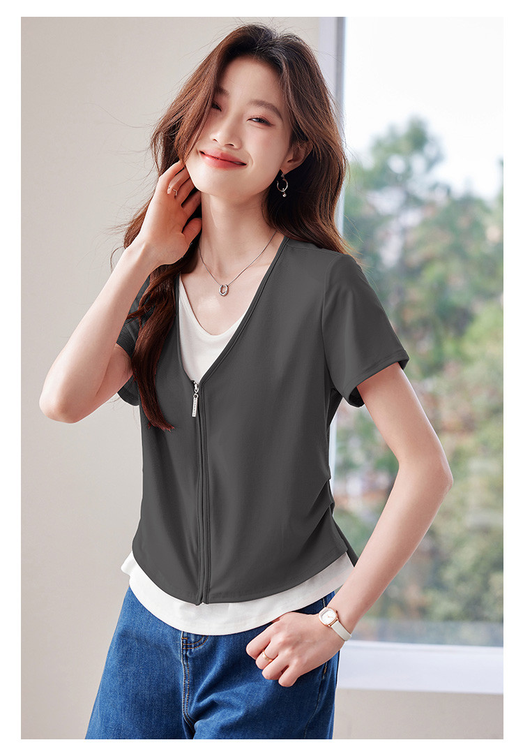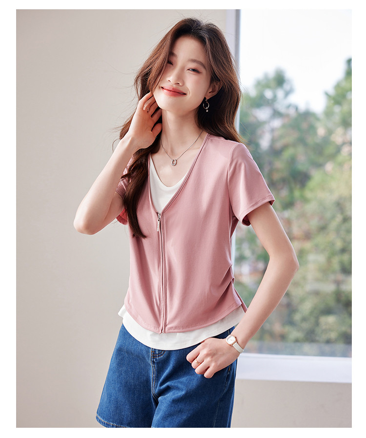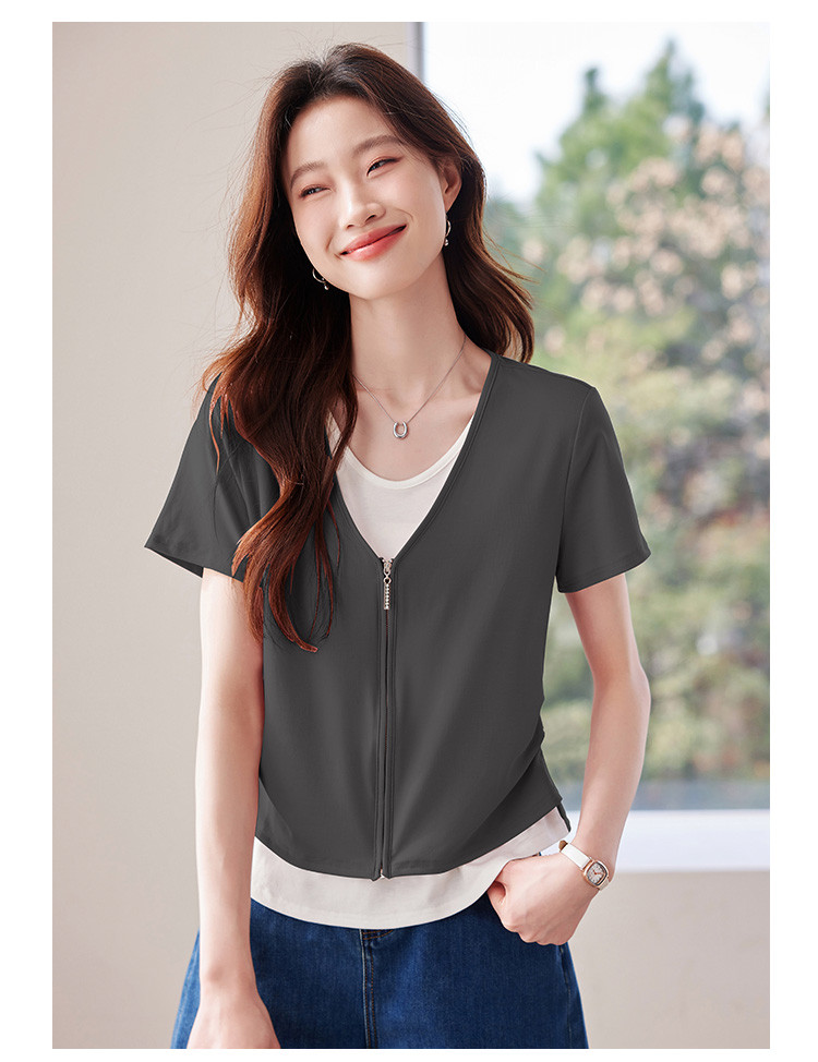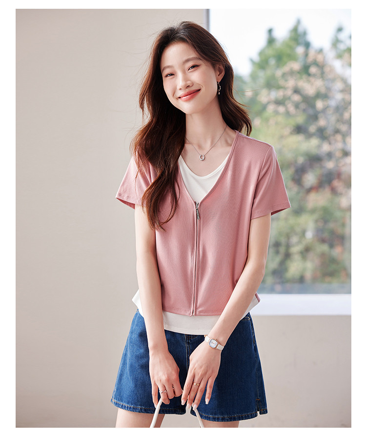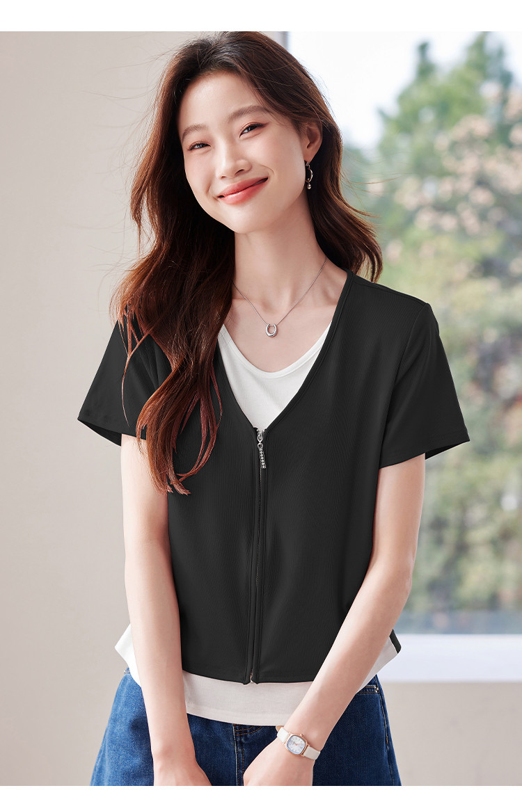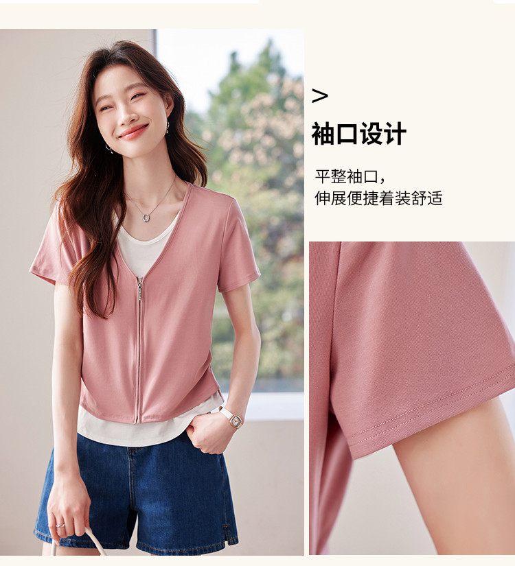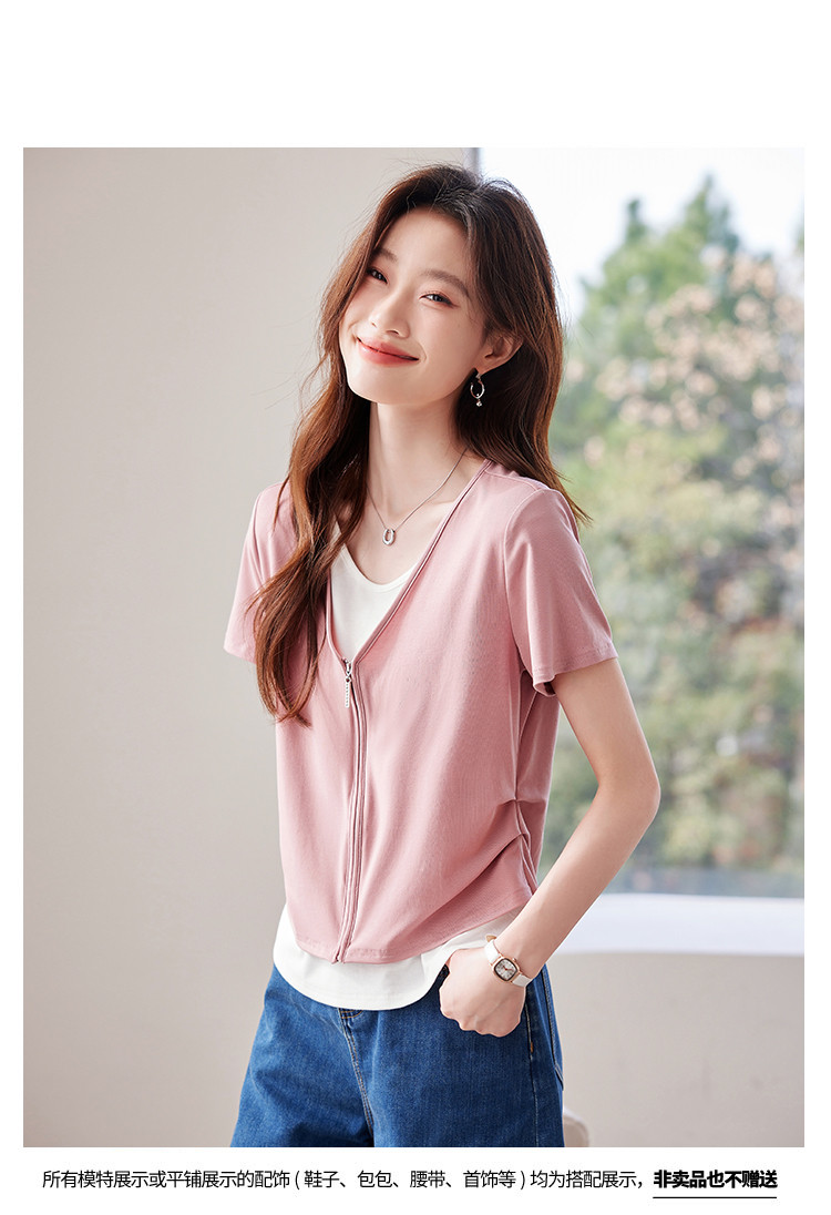 商品名称:【莱赛尔t恤】假两件设计感短袖T恤女夏季2025拼色针织t恤 795039