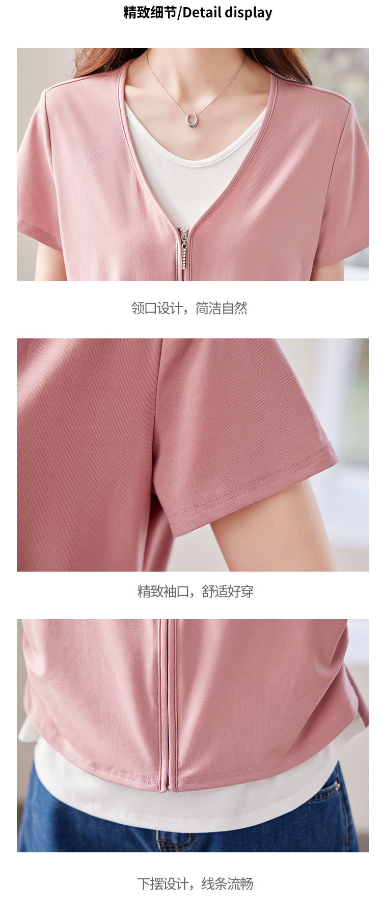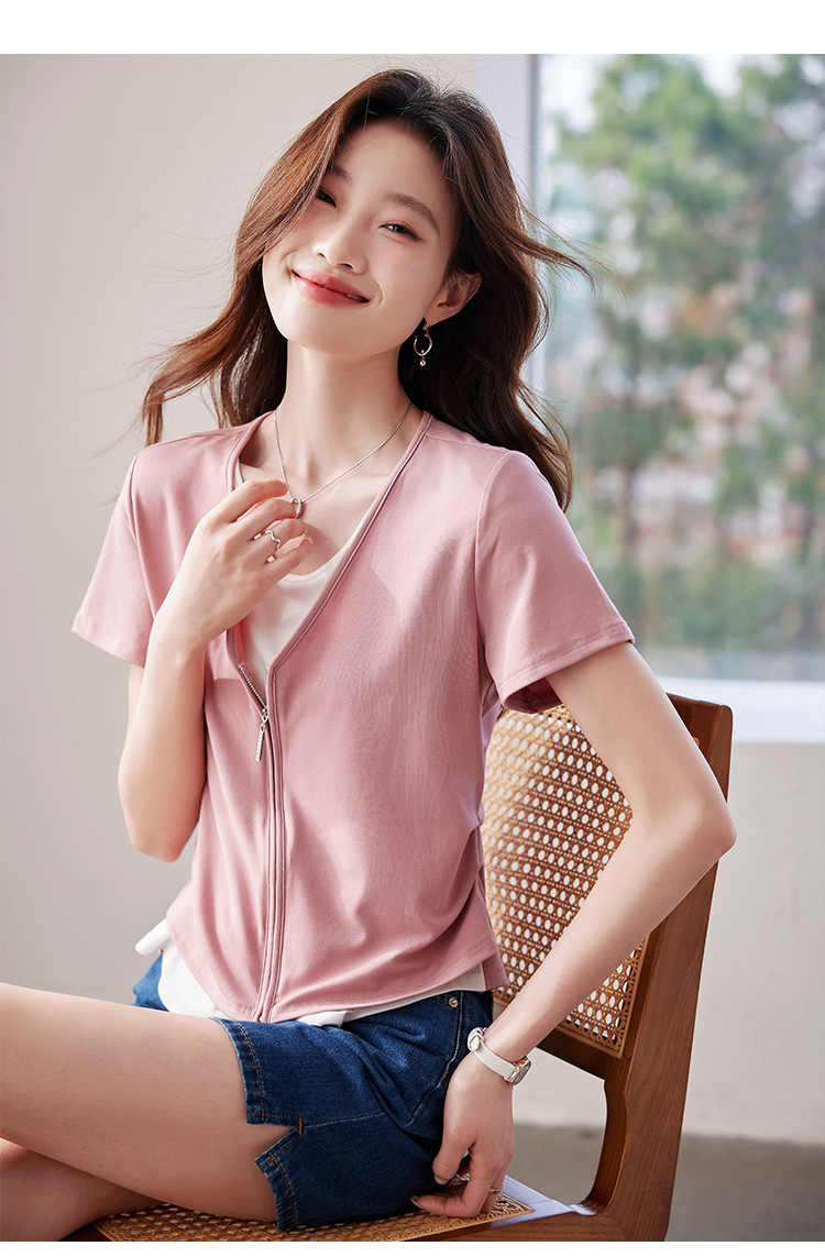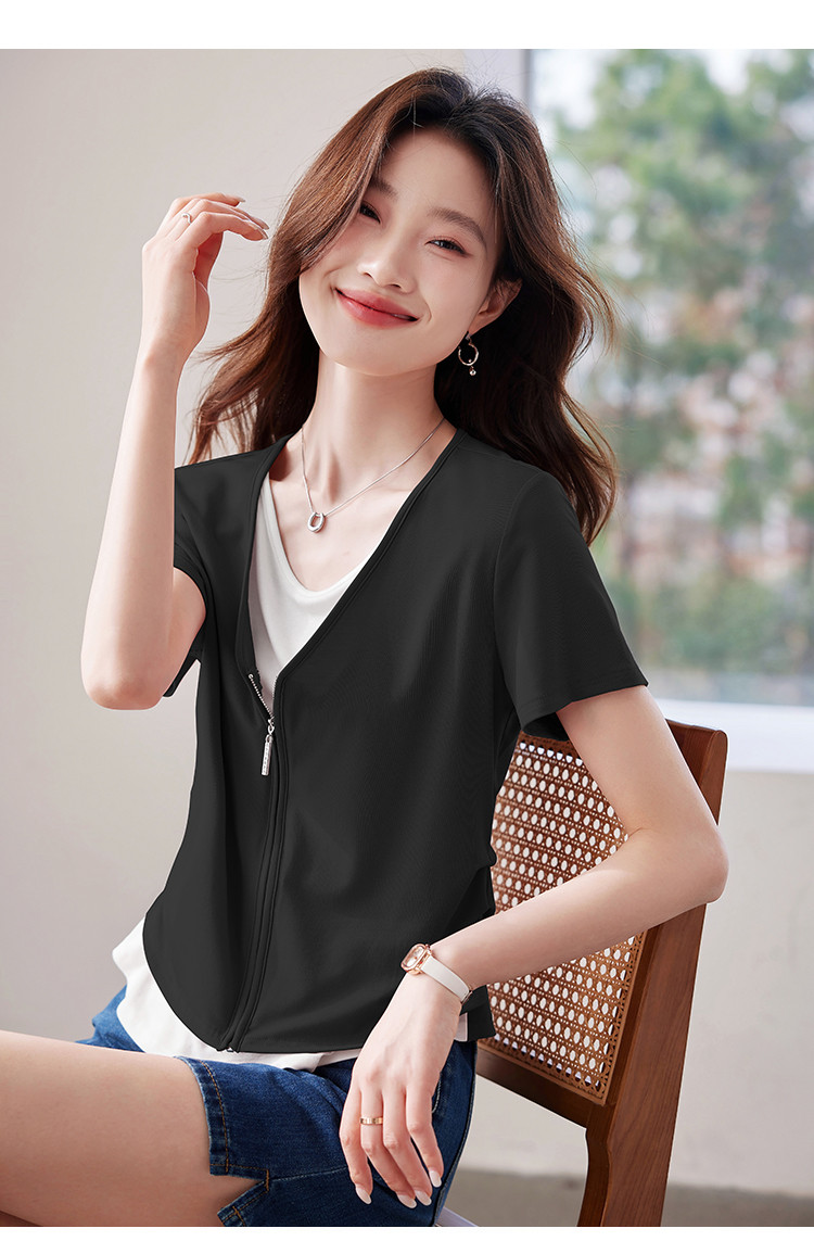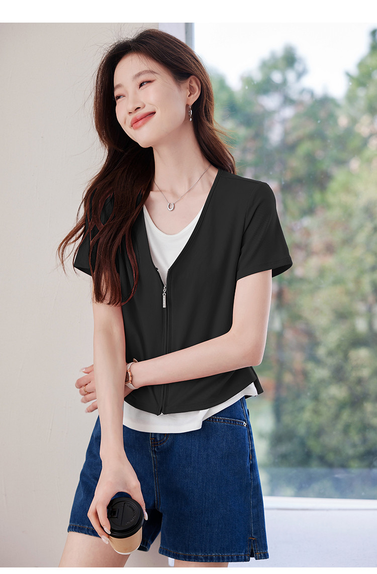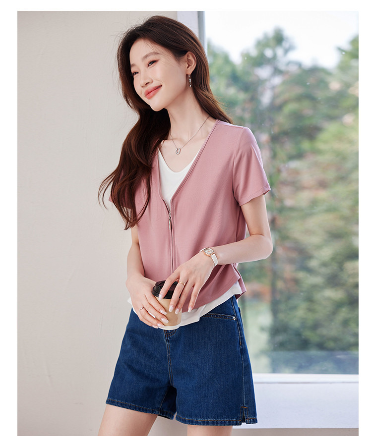 商品名称:【莱赛尔t恤】假两件设计感短袖T恤女夏季2025拼色针织t恤 795039