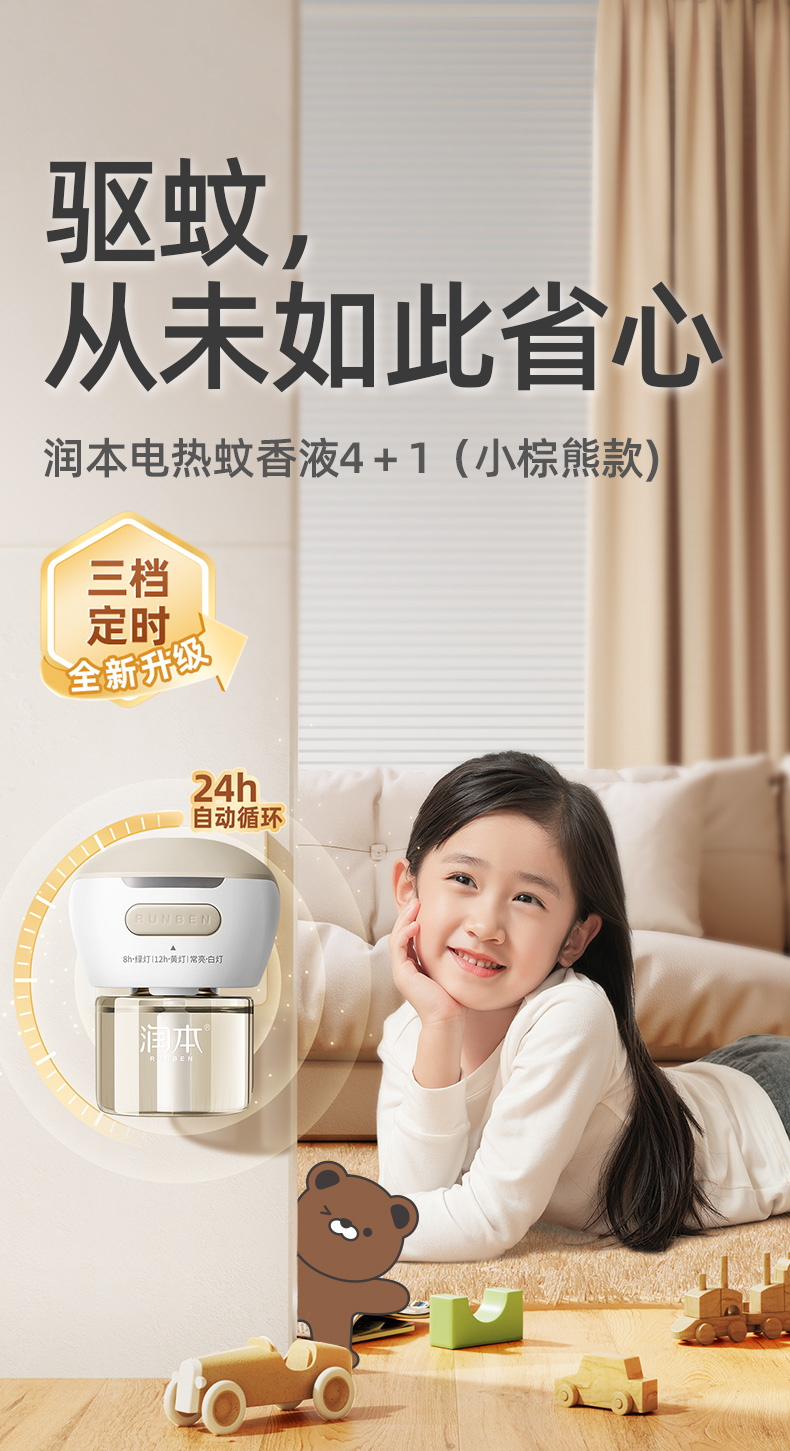润本驱蚊电热蚊香液4液1器三档智能定时款有效驱蚊蚊香器户外防晒啫喱霜
