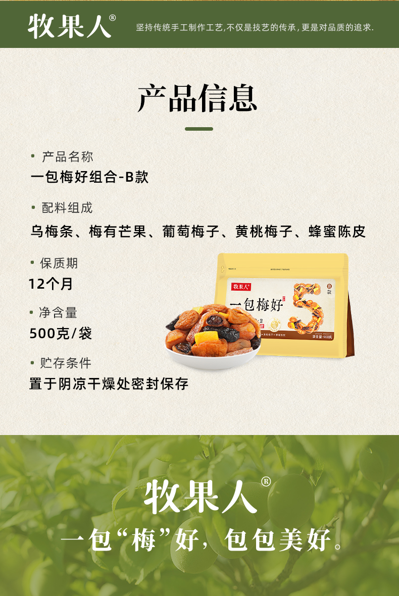 商品名称:牧果人一包梅好果干组合B款500g