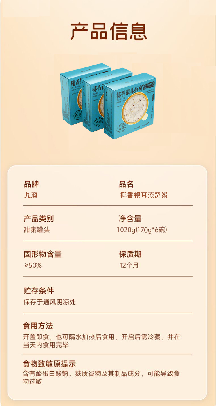 商品名称:九澳椰香银耳燕窝粥170g*6碗