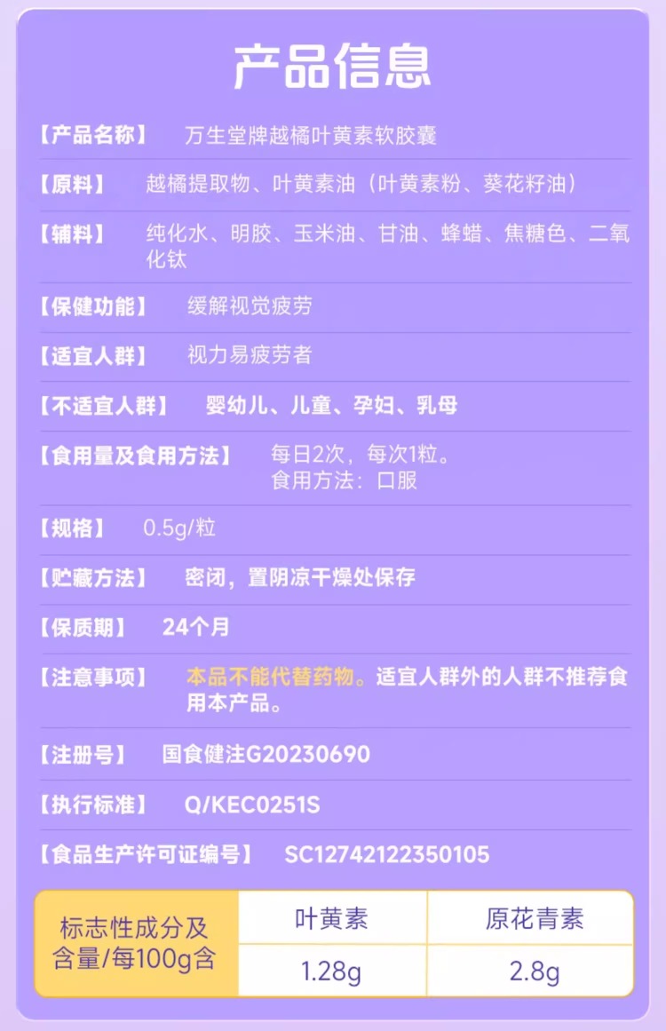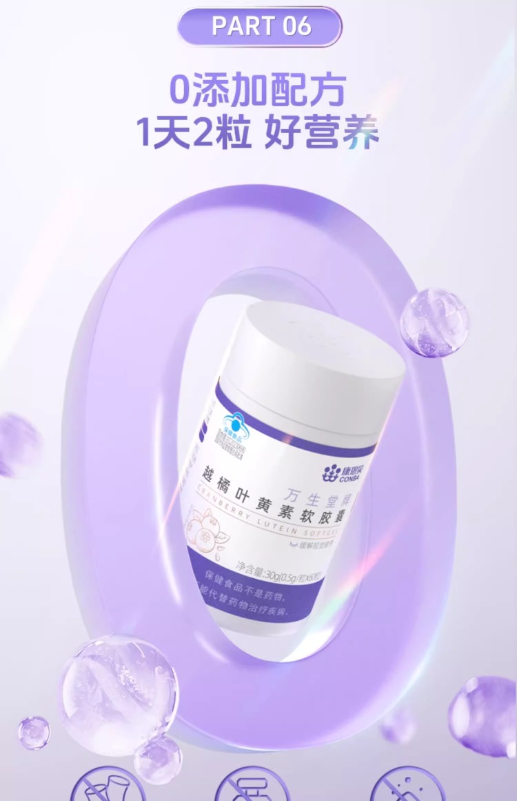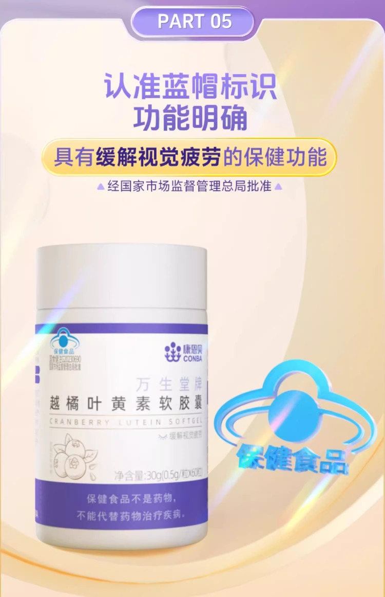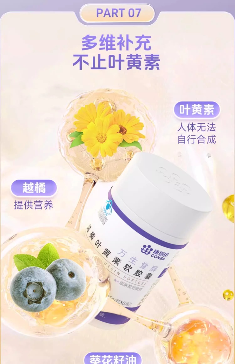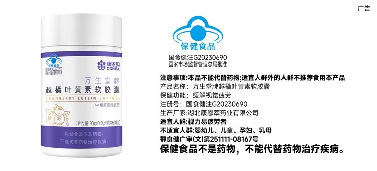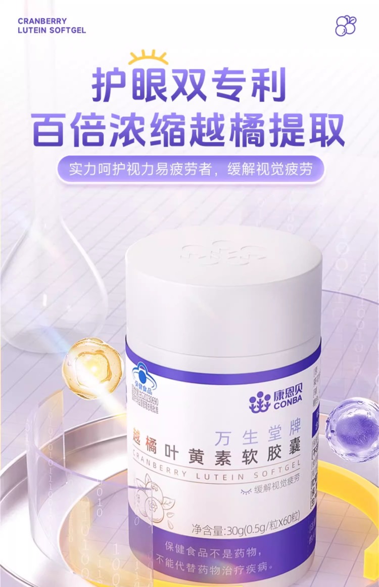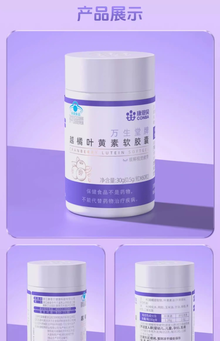 商品名称:CONBA/康恩贝万生堂牌越橘叶黄素软胶囊60粒