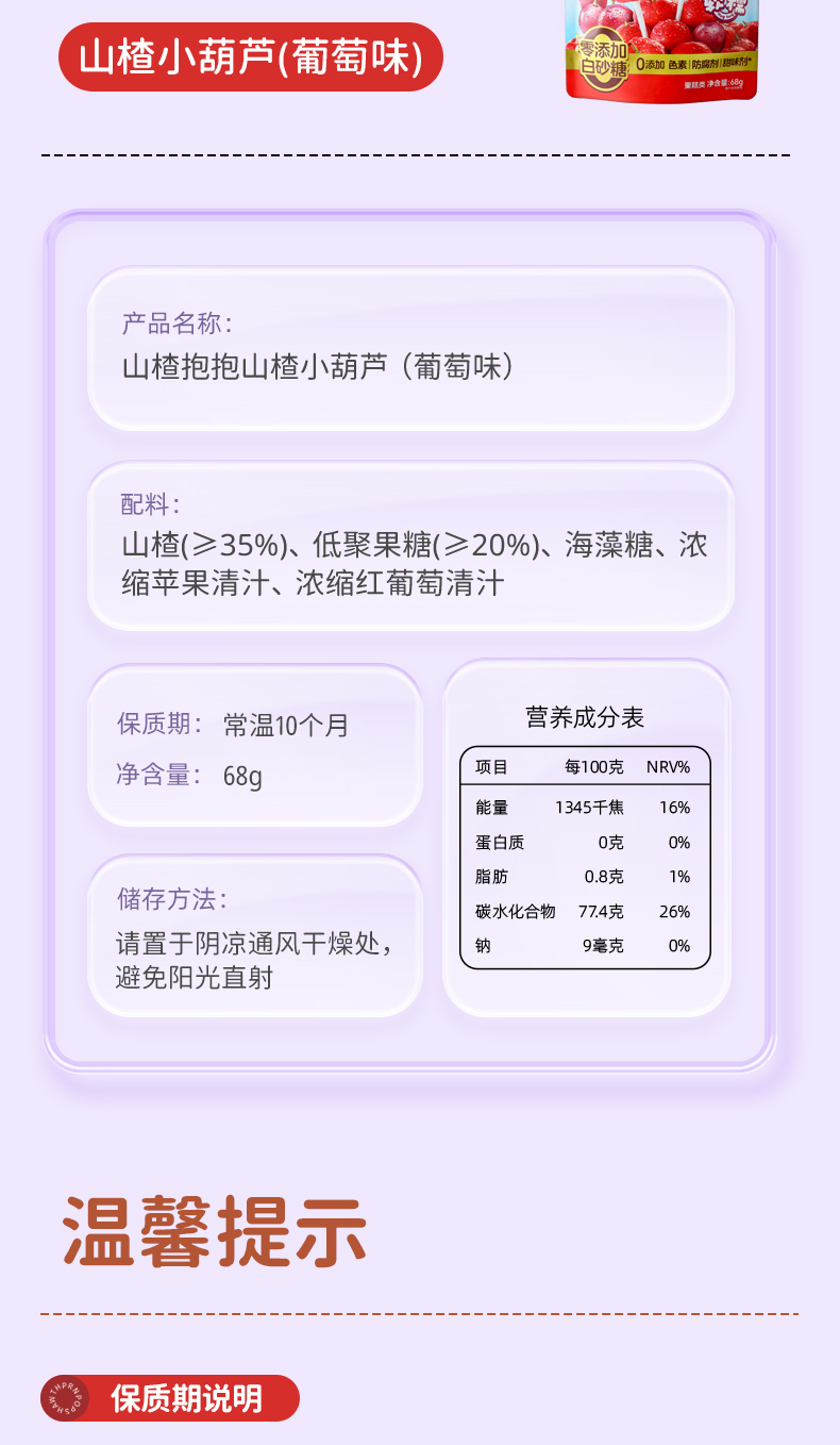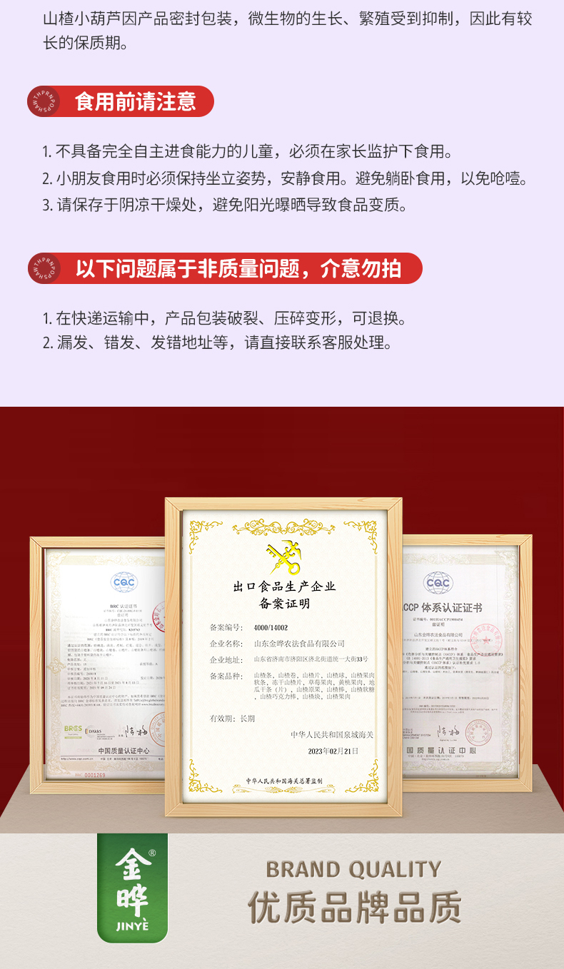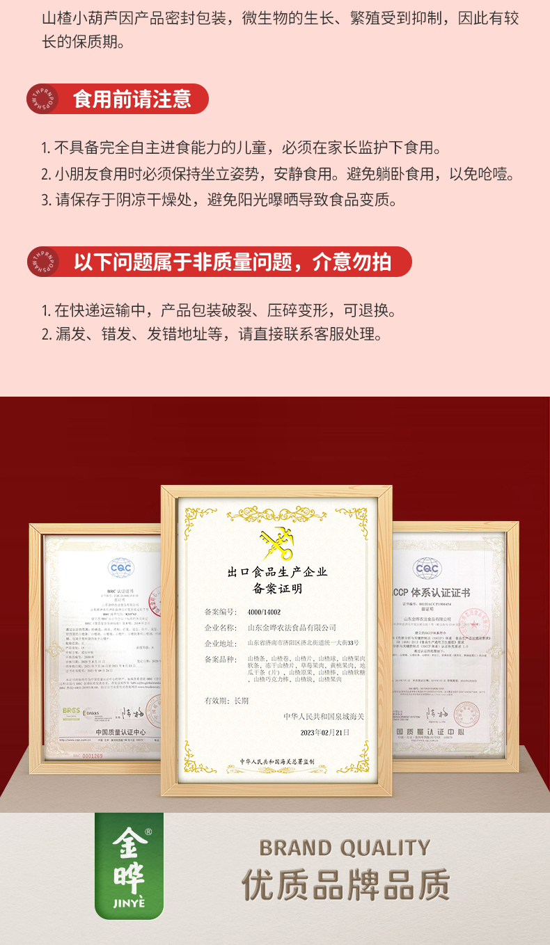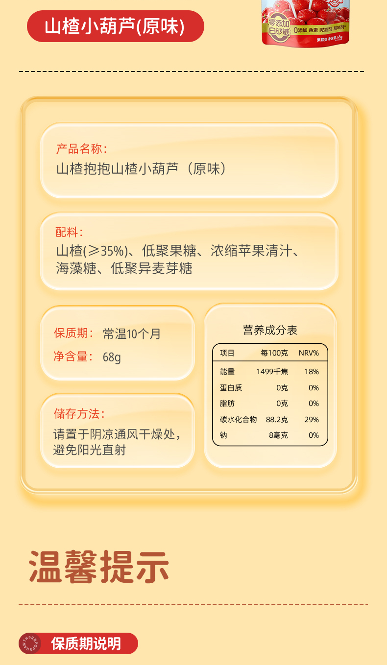 商品名称:金晔山楂抱抱山楂小葫芦68g*3袋
